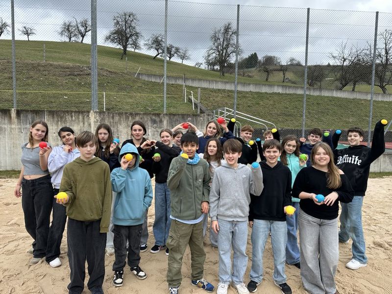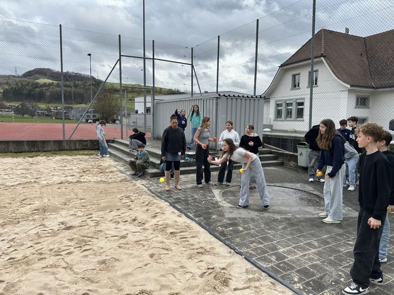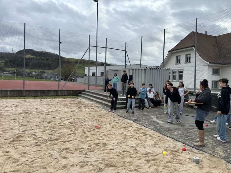Am ersten Montagnachmittag nach den Ferien spielten die Kinder der 6. Klasse zusammen ein paar Durchgänge Pétanque und tranken beim Rangverlesen einen erfrischenden jus de pomme. C`était un plaisir.