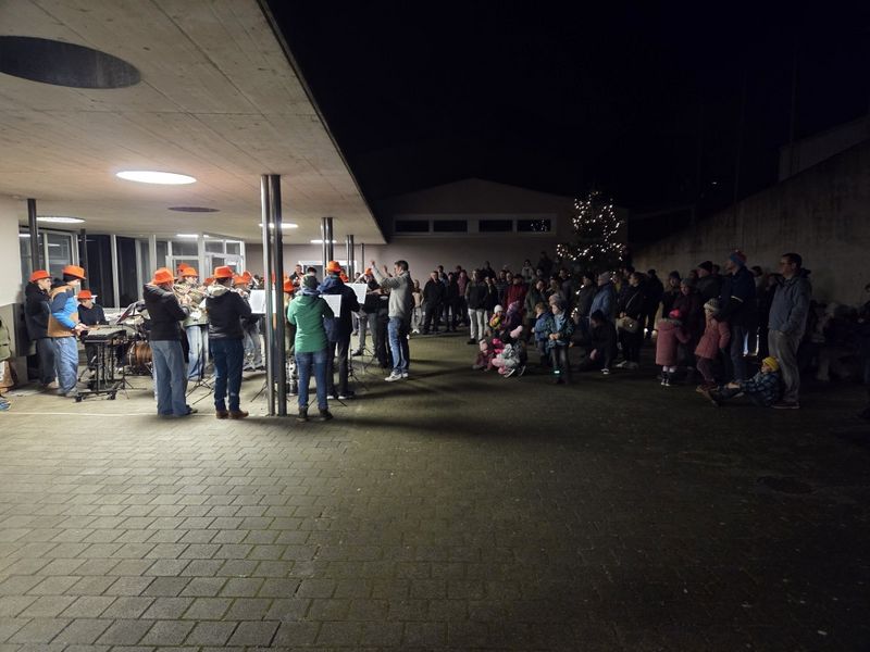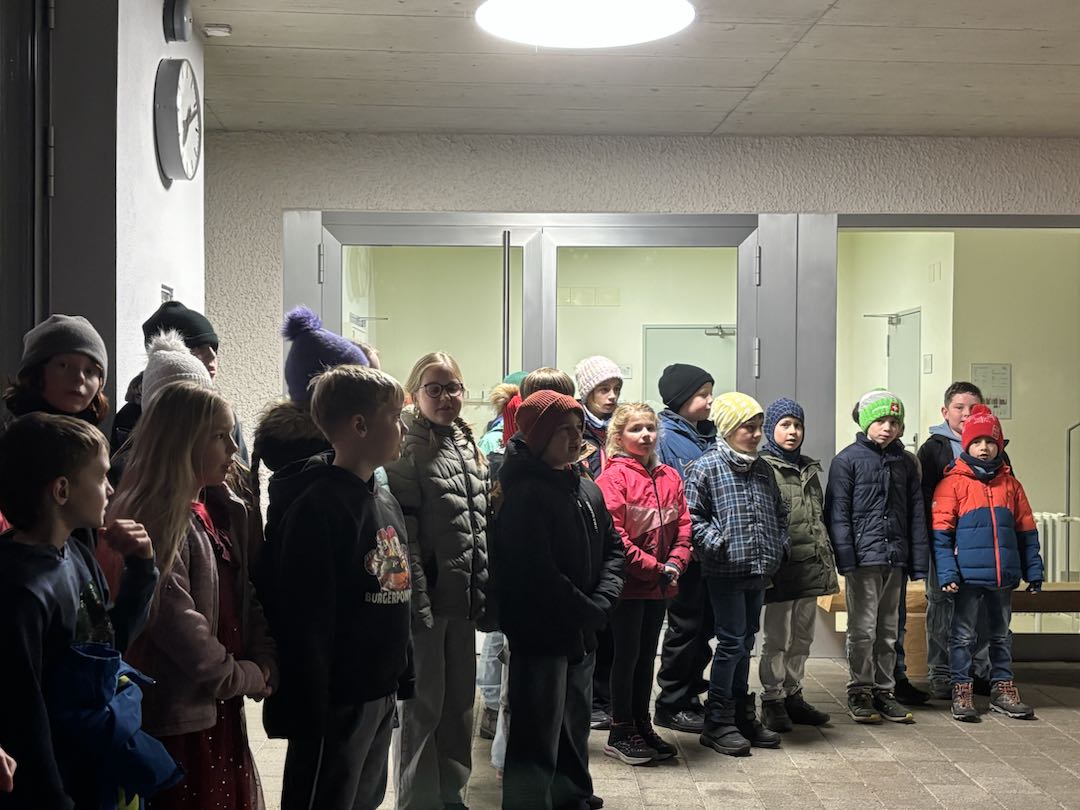 Die Adventsfenster der 3. und 4. Klasse in Wil standen dieses Jahr unter dem Motto „Heb sorg – Upcycling“. Mit viel Kreativität und Freude gestalteten die Kinder ihre Beiträge und setzten das Thema eindrucksvoll um. Besonders schön war, dass das Jugendspiel Geissberg mitgespielt hat und die Feier musikalisch bereicherte. Die Kinder sangen mit Begeisterung, die Musik erfüllte den Platz, und es entstand eine warme, festliche Stimmung. Die zahlreichen Besucherinnen und Besucher genossen die Darbietungen und die besondere Atmosphäre. Zum Abschluss gab es Punsch und Kuchen, was den Abend gemütlich ausklingen ließ.