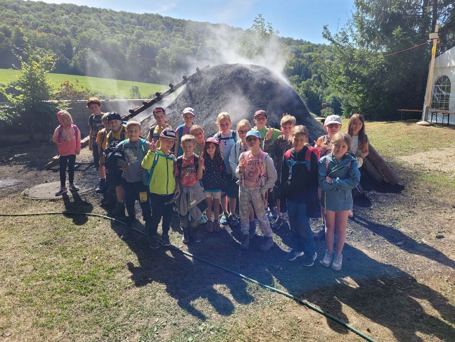 Die 3. Klasse der Schule Mettauertal unternahm einen Ausflug zur Köhlerei auf dem Mettauerberg. Nach einer Wanderung wurden die Kinder herzliche von der Köhlerin und ihrem Team empfangen und erfuhren viel über das alte Handwerk der Holzkohlegewinnung. Besonders beeindruckend war der starke Geruch des Kohlenmeilers, der den Besuch prägte. Ein kurzer Film vertiefte das neu erlernte Wissen und zeigte den Prozess der Kohlegewinnung. Der Ausflug endete mit einem gemeinsamen Foto, bevor die Kinder den Rückweg nach Mettau antraten.