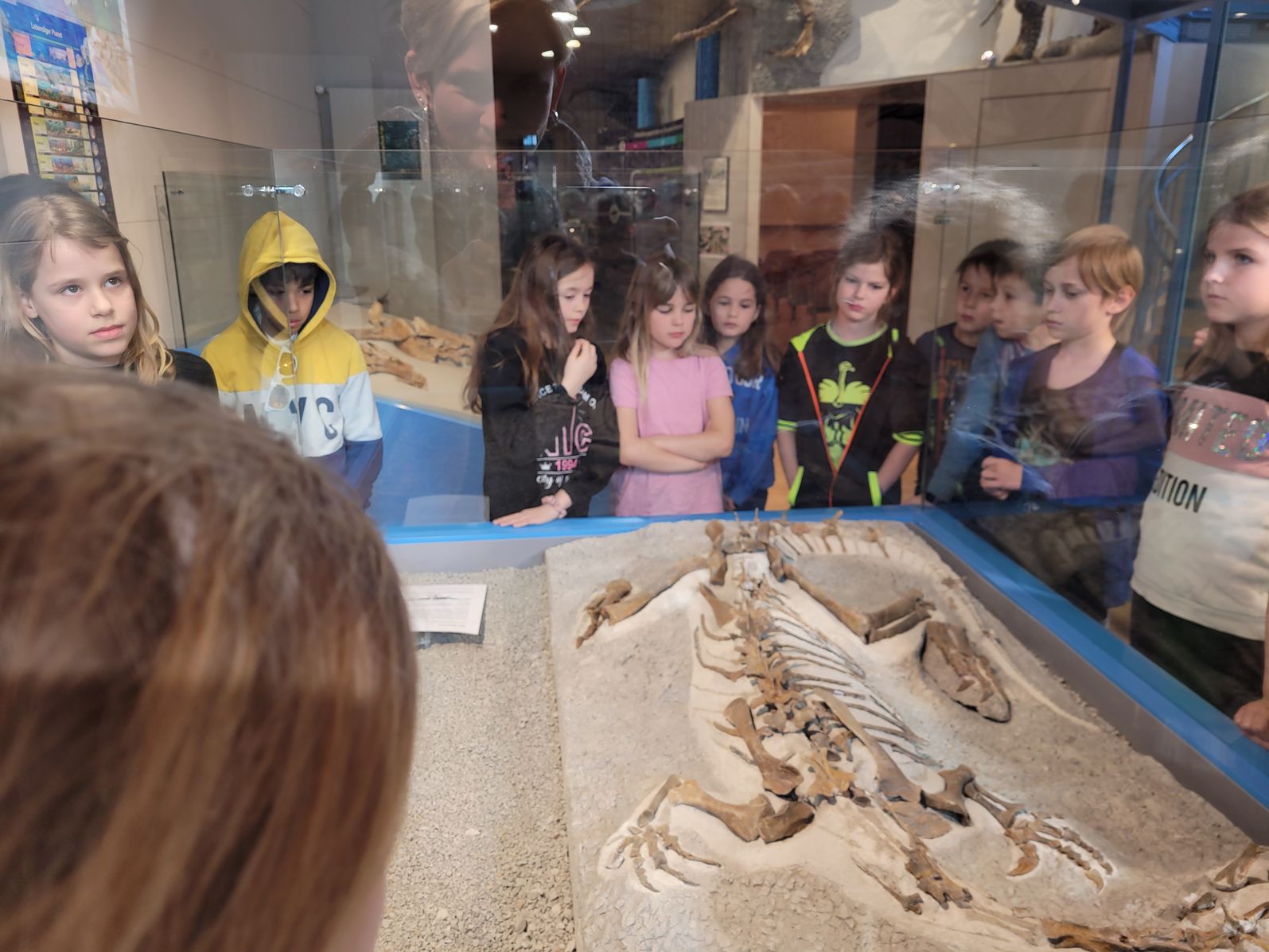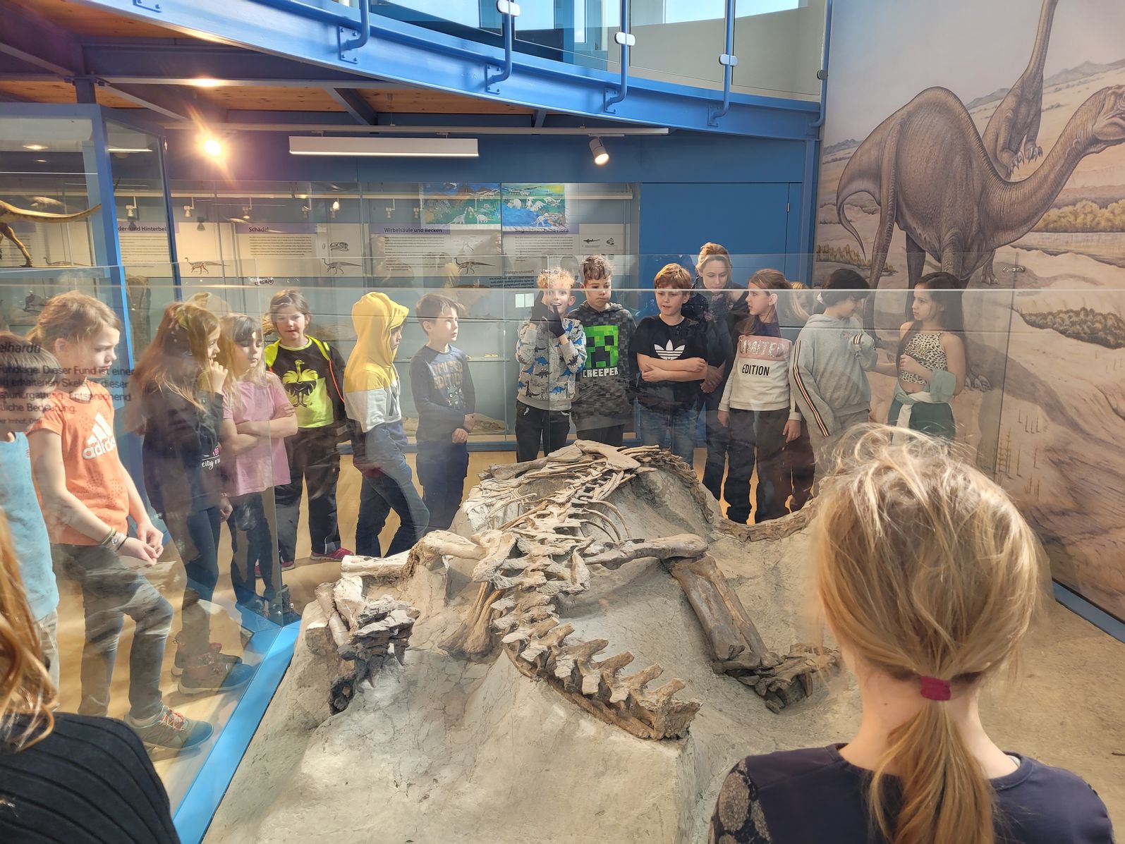 Wir, die 3. Klasse, besuchten das Dinomuseum und den Klopfplatz in Frick. Im Museum konnten wir uns über die Geschichte der Dinosaurier in Frick informieren und auch echte Fossilien bestaunen. Auf dem Klopfplatz hatten wir dann die Möglichkeit, selbst nach Fossilien zu suchen und diese mit nach Hause zu nehmen. Es war für alle ein interessanter und lehrreicher Ausflug.