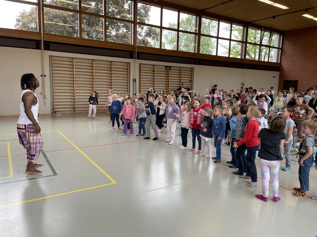 Beim diesjährigen Kulturanlass der Schule Mettauertal waren afrikanische Tänzer und Trommler auf Besuch. In der Turnhalle und auch draussen wurde vom Kindergarten bis zur 6. Klasse getanzt, gesungen und viel gelacht. Die Begeisterung war spürbar gross.