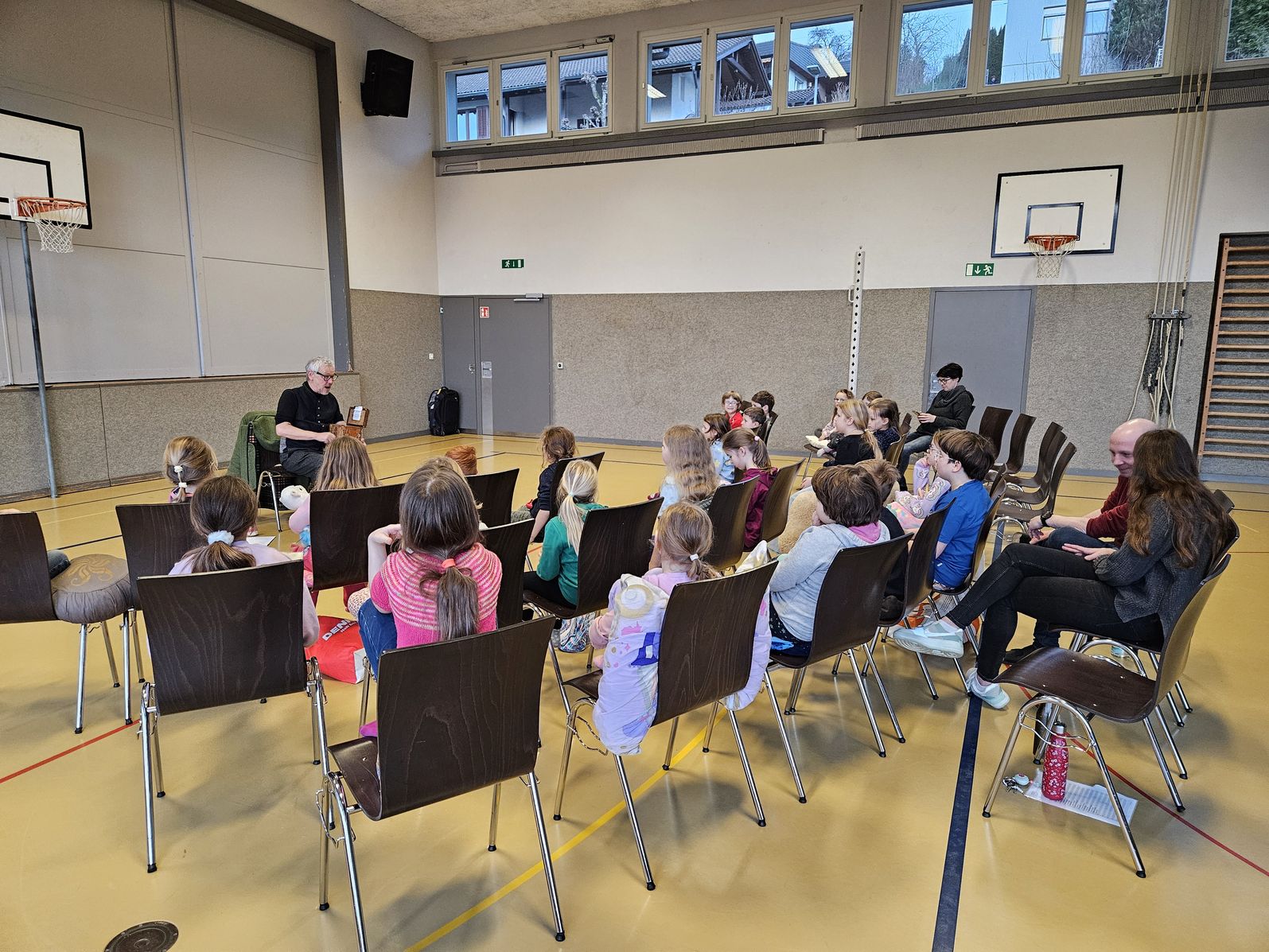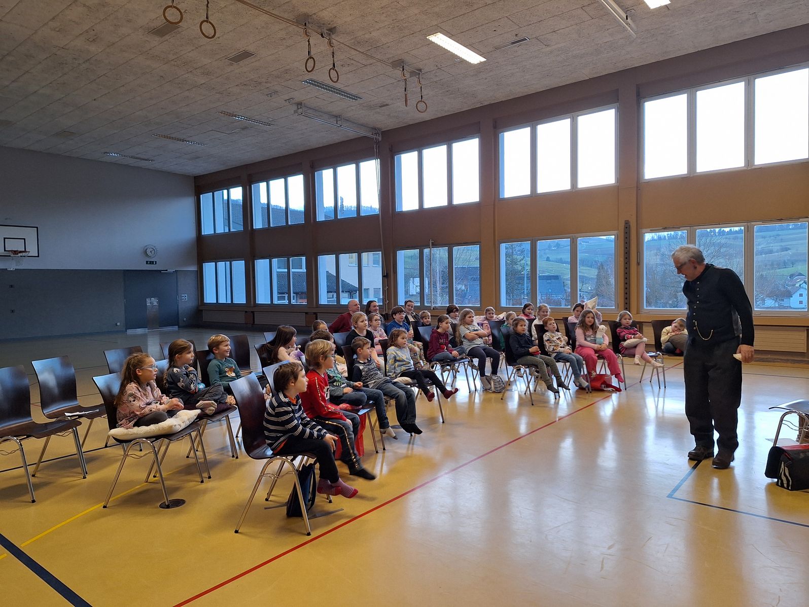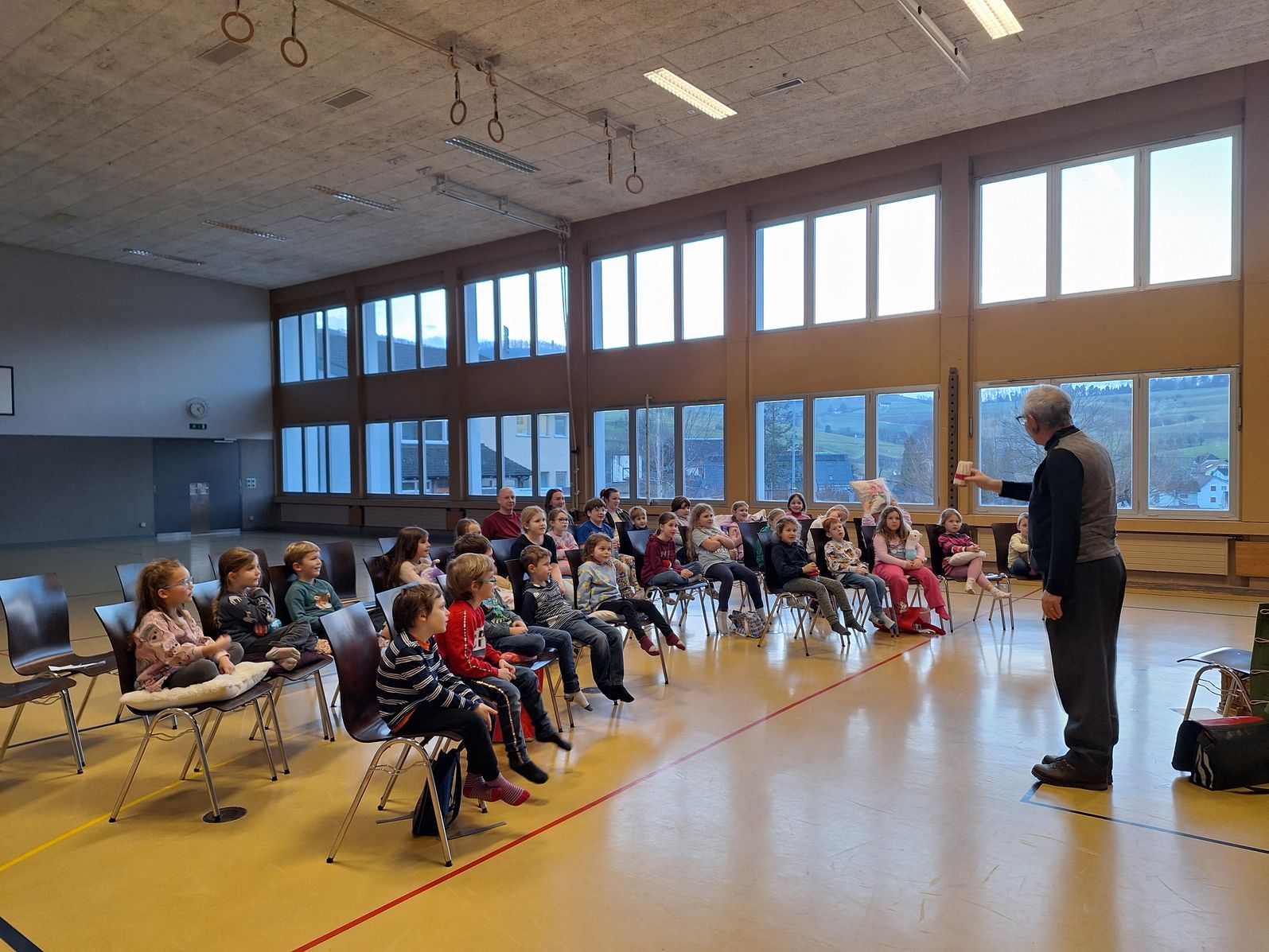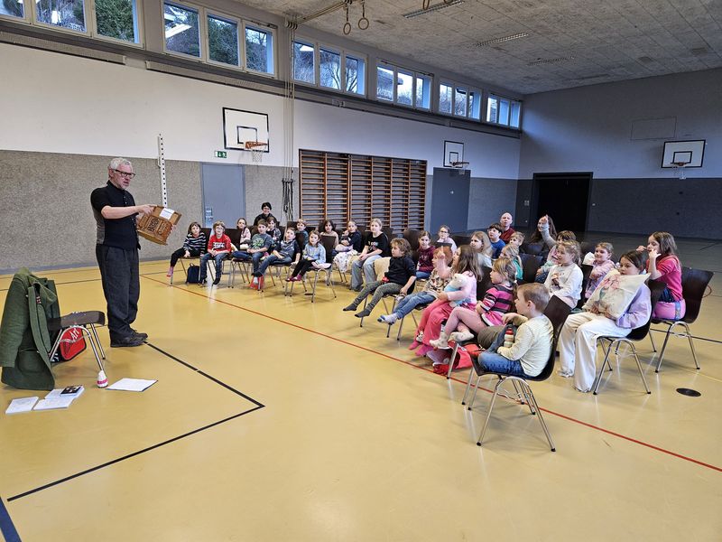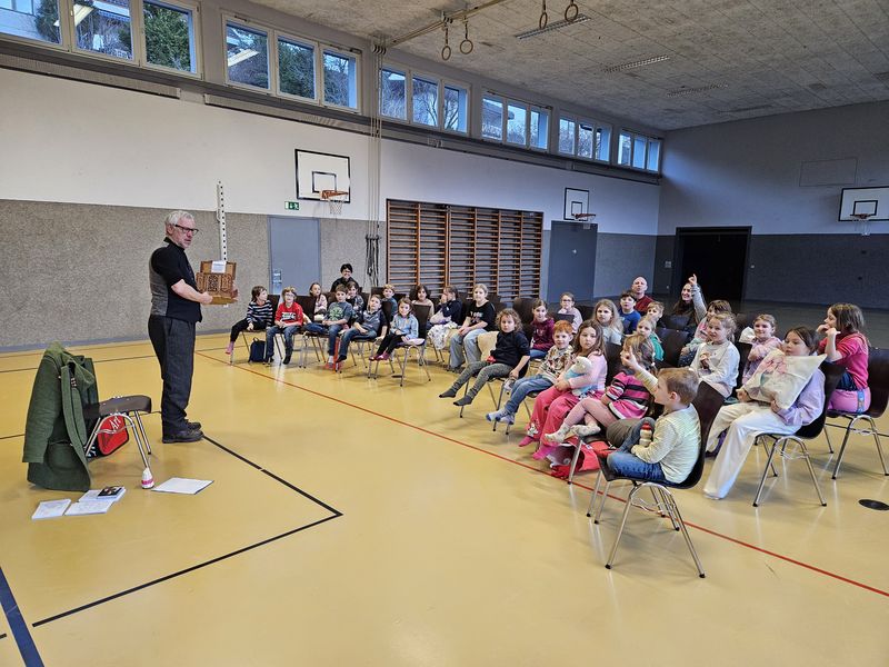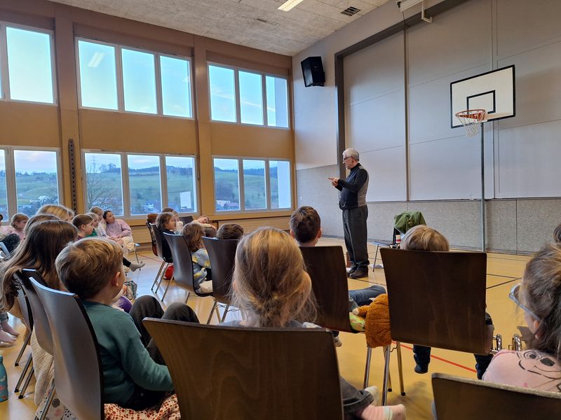 Am 23. Januar durften die Kinder vom Kindergarten bis zur 6. Klasse am Erzählabend in der Turnhalle dabei sein. Der Anlass wurde rege besucht von den Kindern und sie lauschten gespannt dem Geschichtenerzähler Jürg Steigmeier, der verschiedene Märchen und Geschichten erzählte. Es war ein ausgesprochen märchenhafter Anlass.