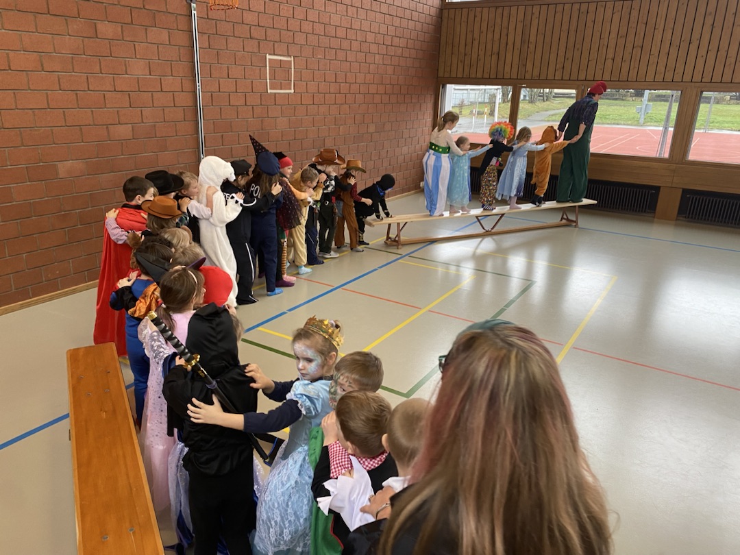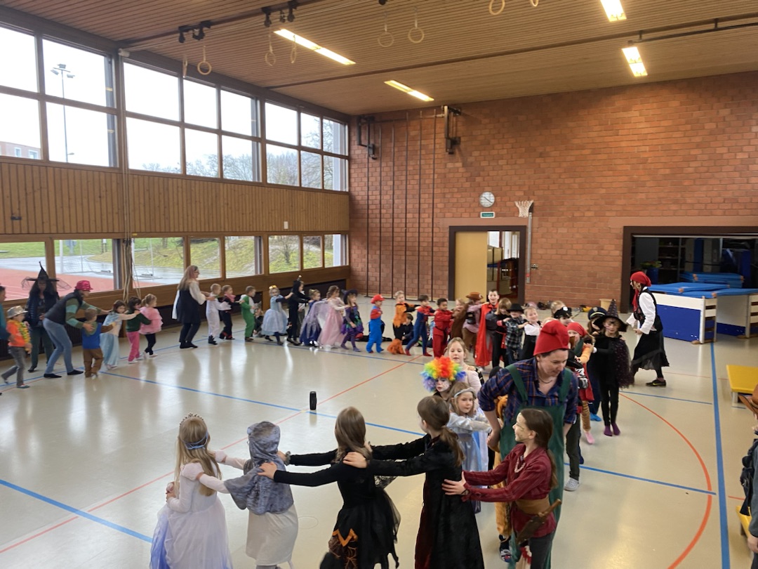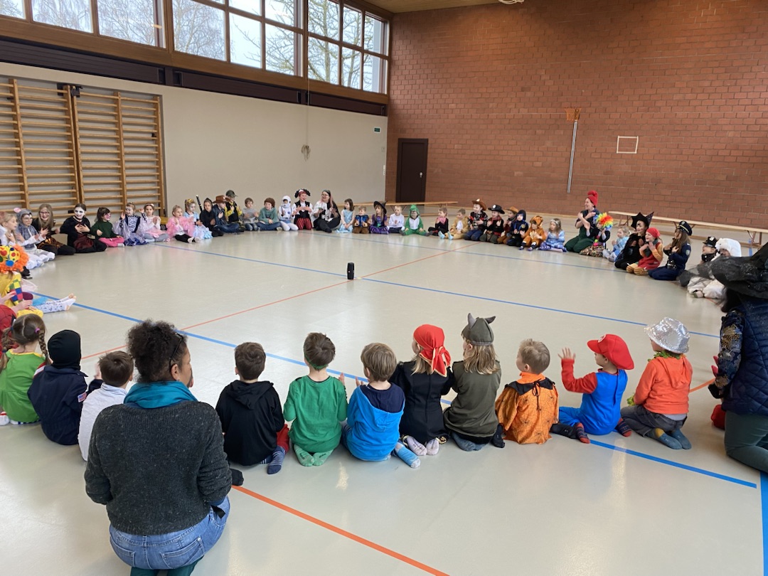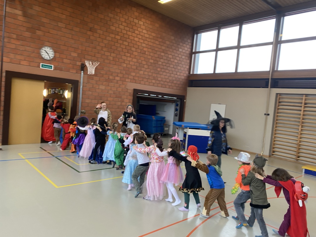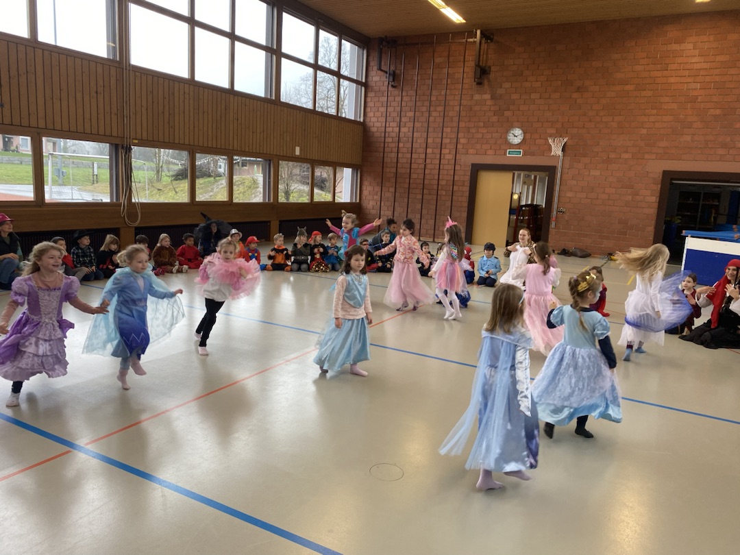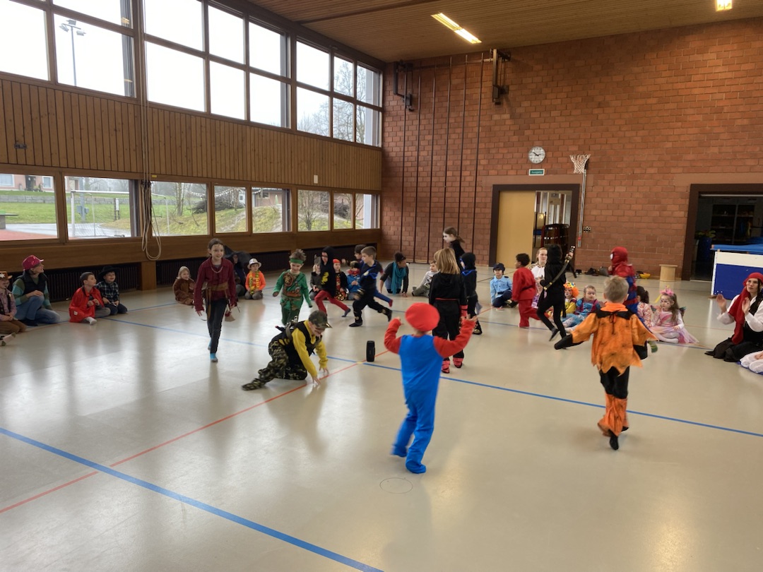 Am 3. Faisse (8. Februar) nach der grossen Pause versammelten sich alle Kinder in der Turnhalle. Gemeinsam wurden das Fasnachtsprogramm mit einem Lied eröffnet. Während mehreren Liedern und Fasnachts-Tänzen konnten die Kinder ihre tollen Verkleidungen präsentieren. Den Abschluss bildete eine lange Polonaise durch das gesamte Schulgebäude. Zum Schluss bekamen alle Cowboys, Prinzessinnen, Clowns, Superhelden, Feen, Agenten, Hexen, Pippi's, Piraten und wilden Tiere ein feines Fasnachtsgebäck.