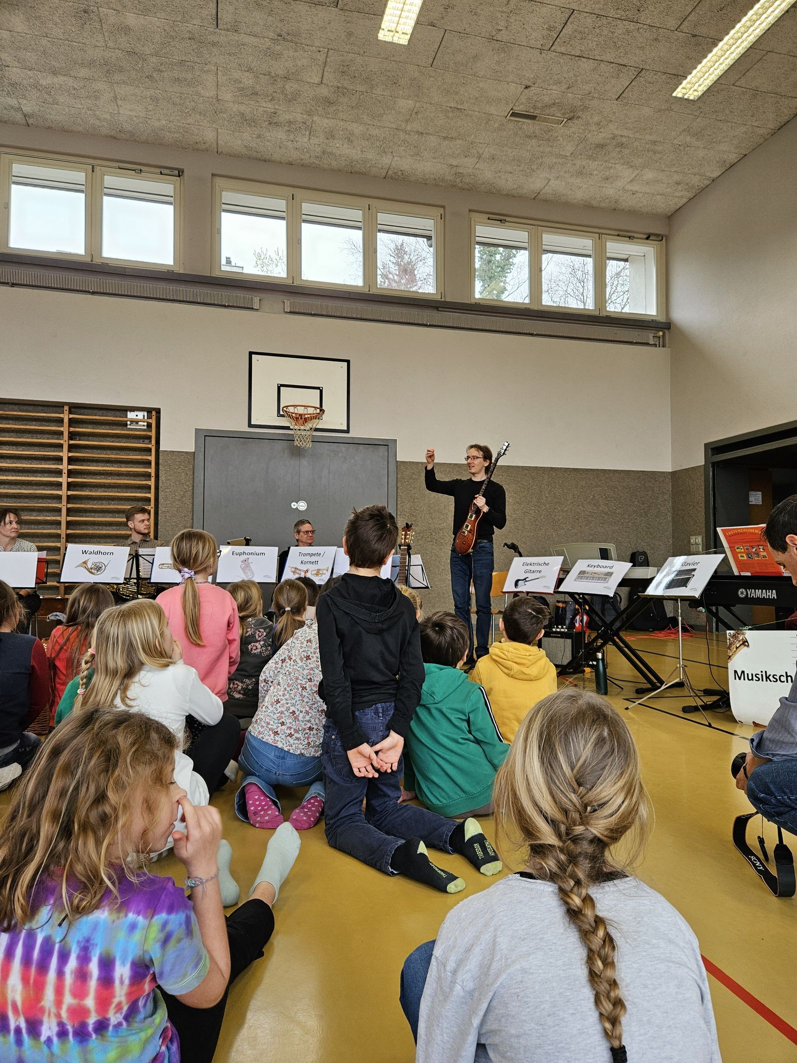 Die Kinder des grossen Kindergartens bis zur 3. Klasse durften am 29. Febuar an der Instrumentenvorstellung der MSRL den Klängen der unterschiedlichsten Instrumente horchen und sie kennenlernen. Eine spannende Lektion, die von den Musikschullehrpersonen der MSRL geleitet wurde. Herzlichen Dank für den Einblick.
