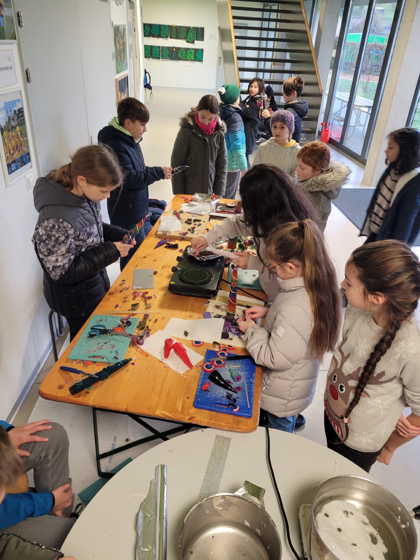 Am Donnerstag, 21. Dezember 2023 durften die Kinder der 3. - 6. Klasse in Wil Kerzen ziehen und diese gestalten. Es sind viele wunderschöne Kunstwerke entstanden.