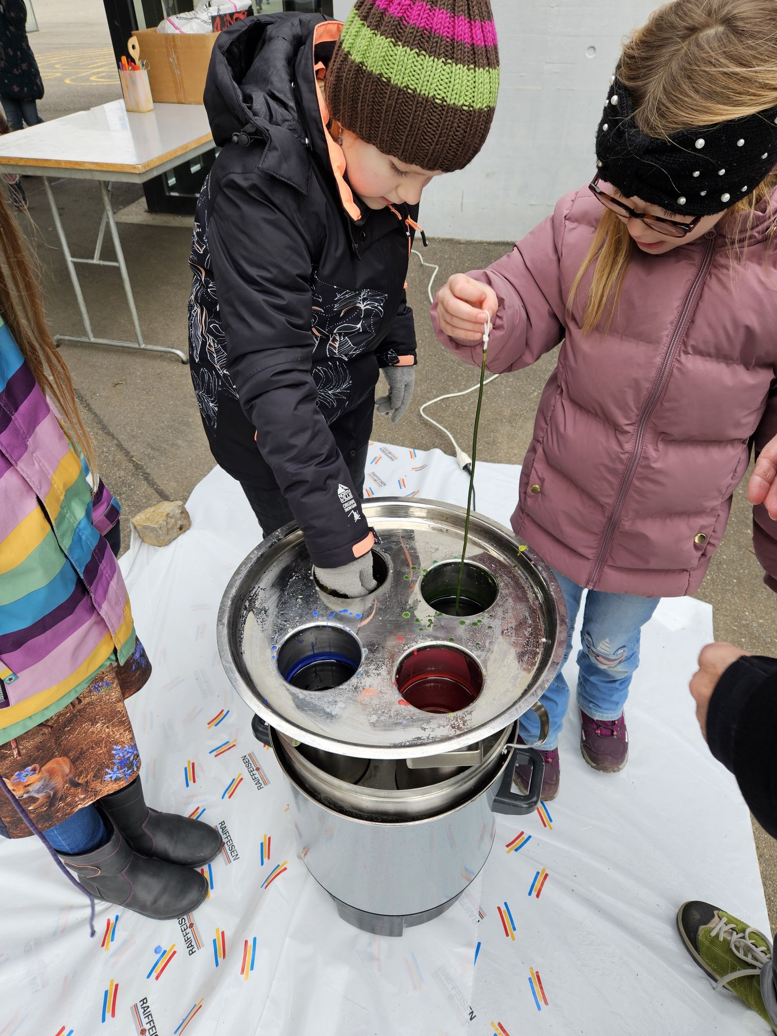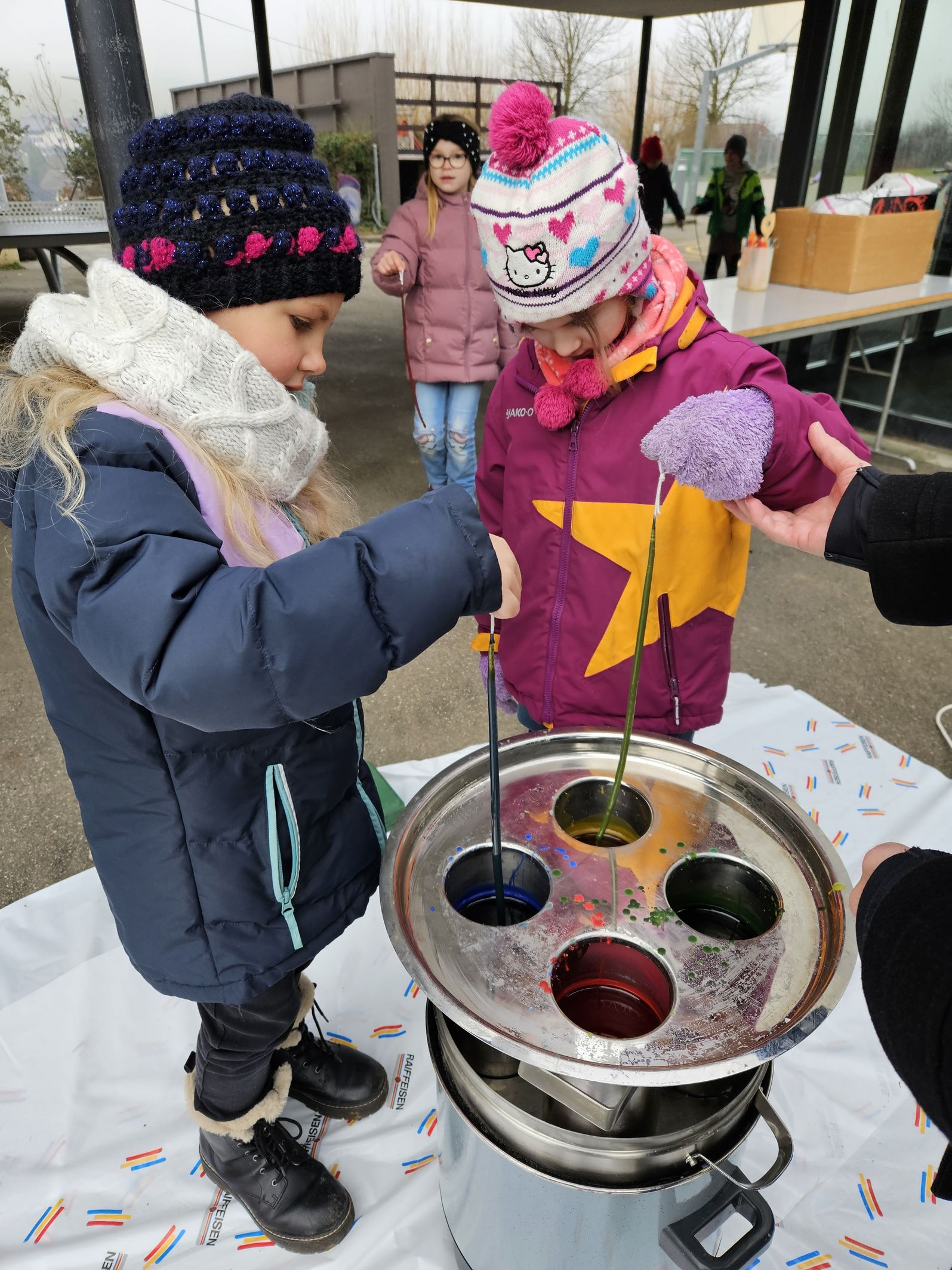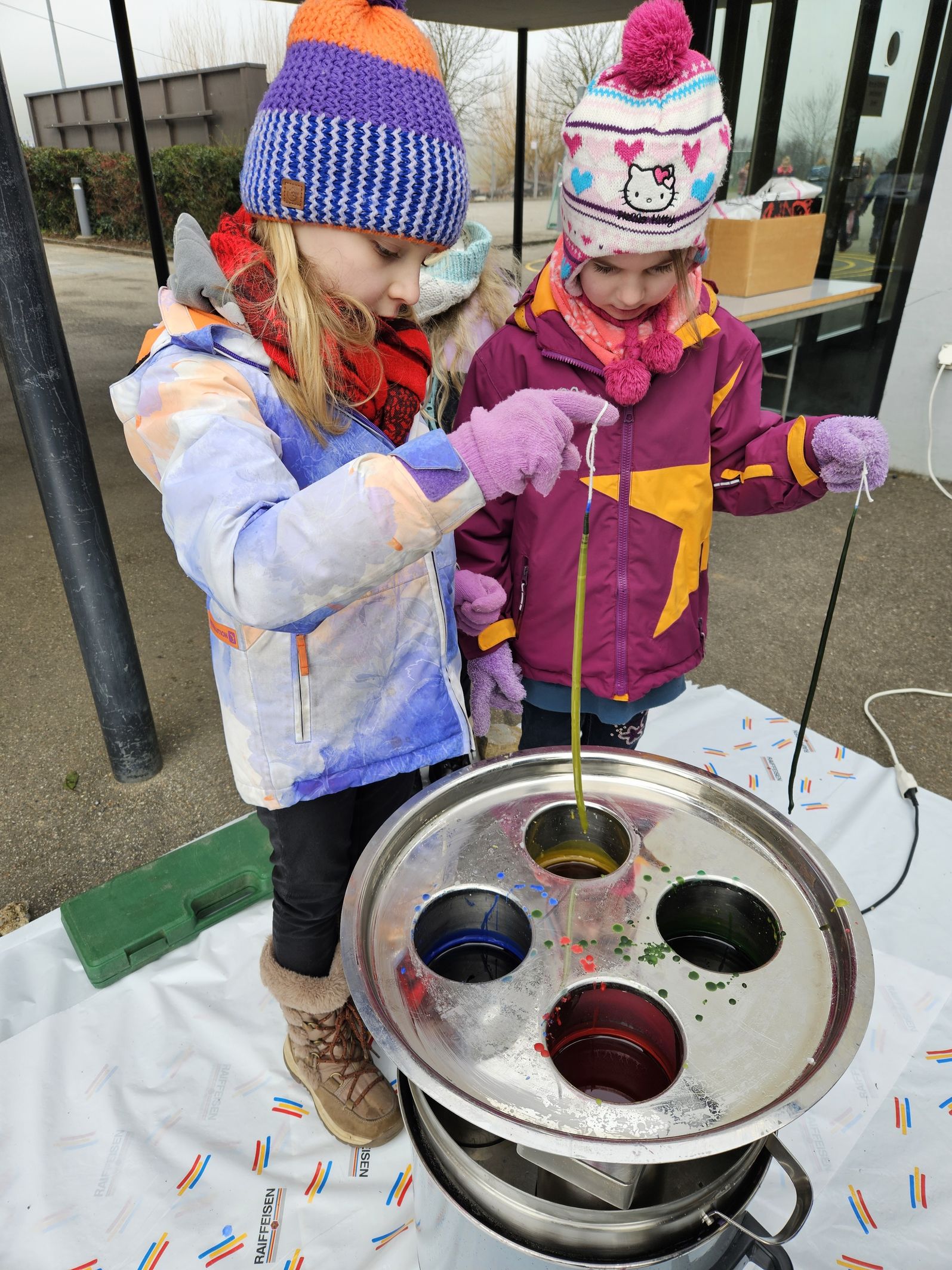 Die Schülerinnen und Schüler durften in diesem Jahr bei wunderbarem Wetter und kalten Temperaturen draussen Kerzen ziehen. Es entstanden viele wunderschöne Kunstwerke, die mit Freude gestaltet wurden.