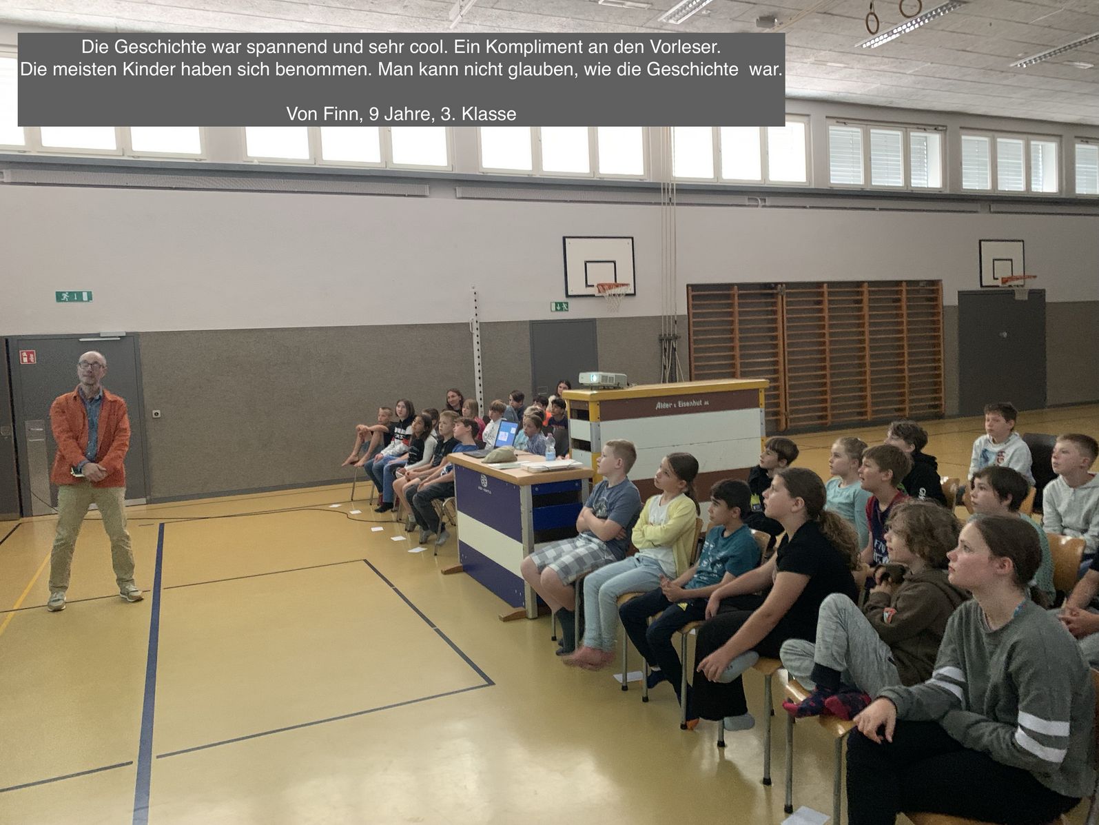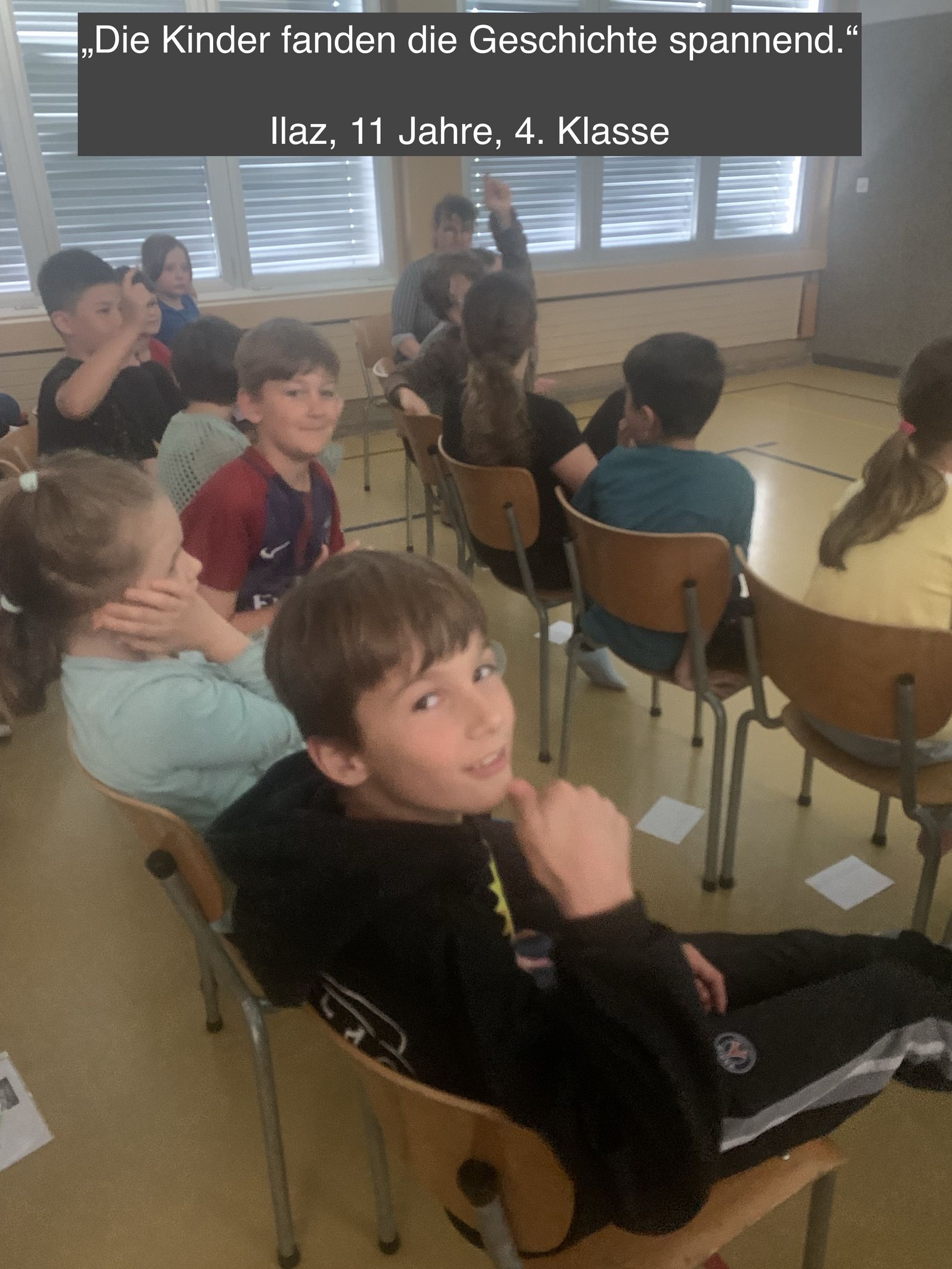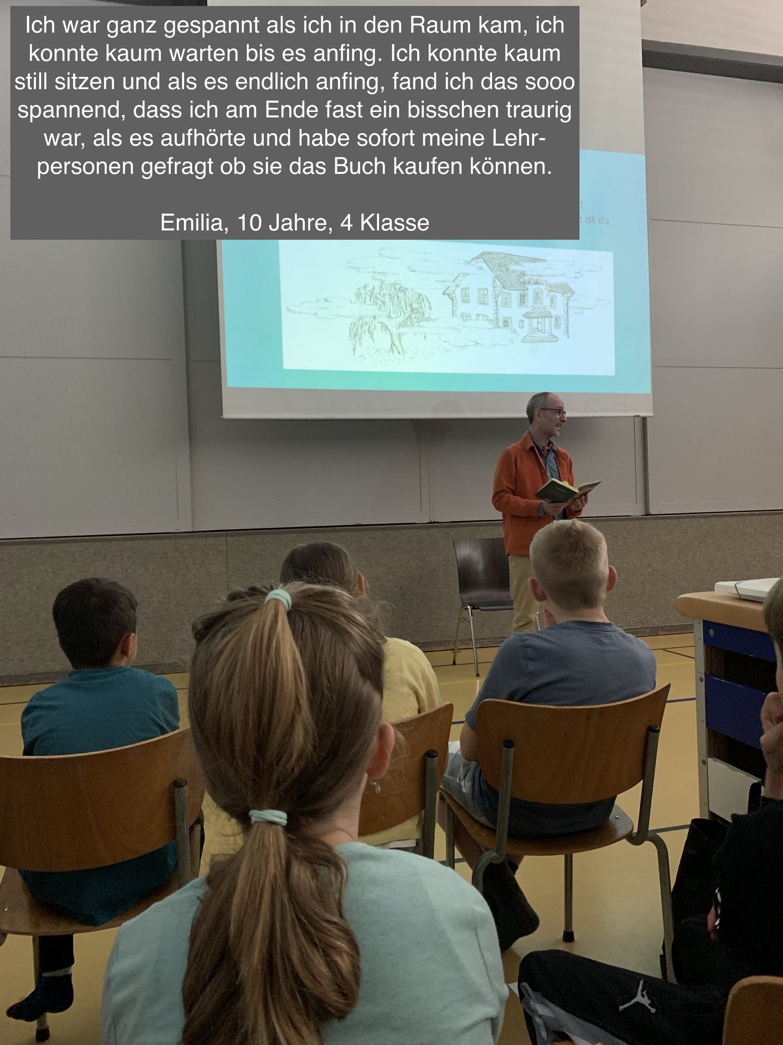 Daniele Meocci erzählte im Rahmen des Kulturanlasses sein Bilderbuch. Gespannt lauschten die Kinder der 3. bis zur 6. Klasse der Erzählung. Die 3. und 4. Klässler durften ihre Eindrücke in eigene Worte fassen und lassen uns auf den Fotos daran teilhaben.