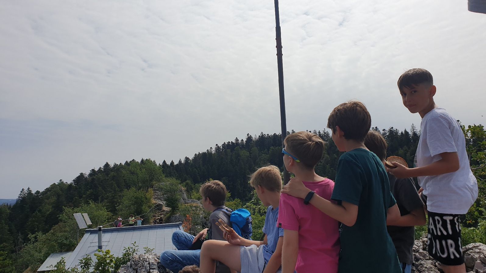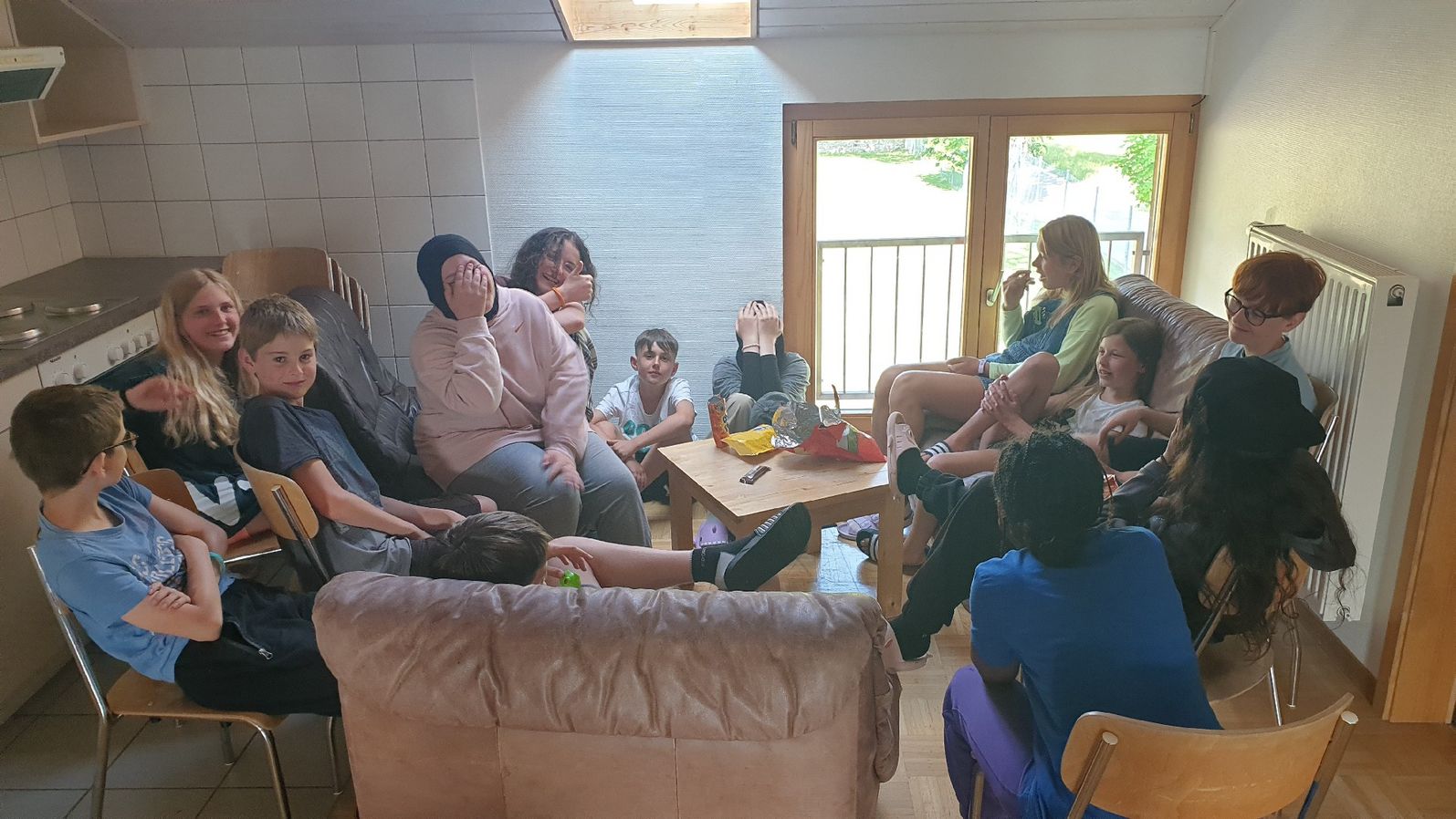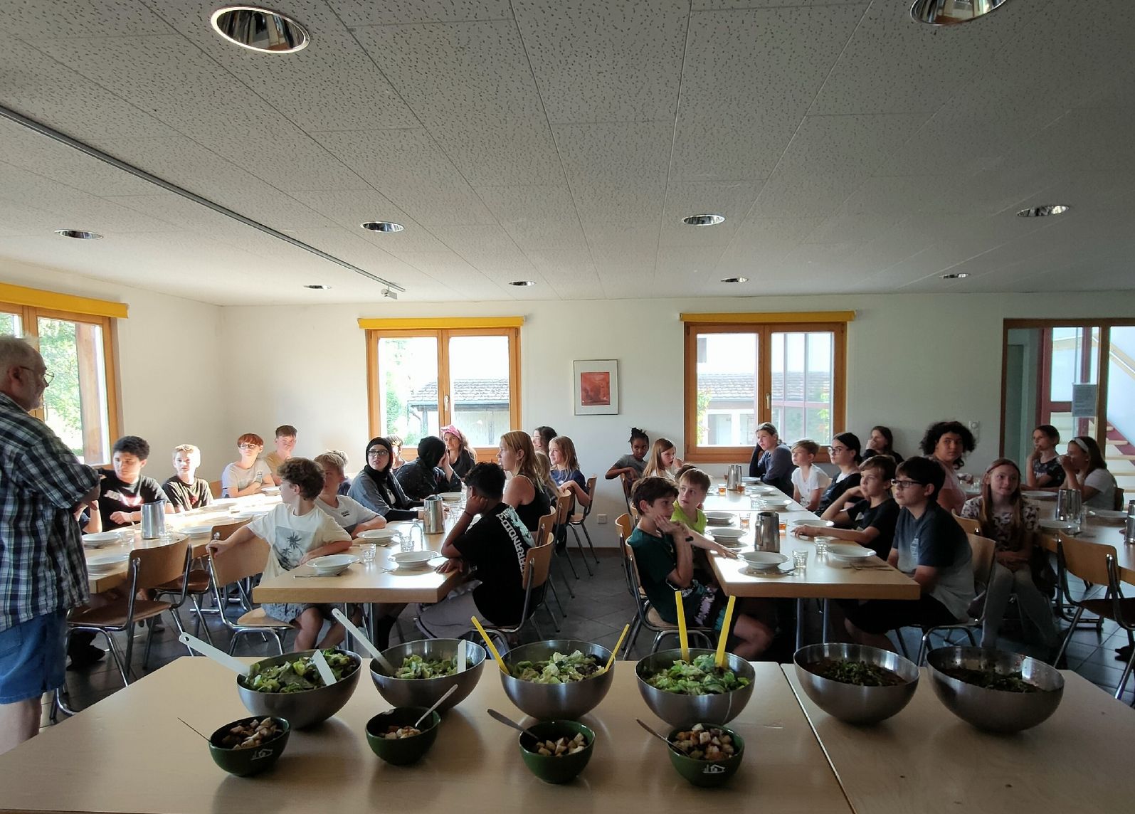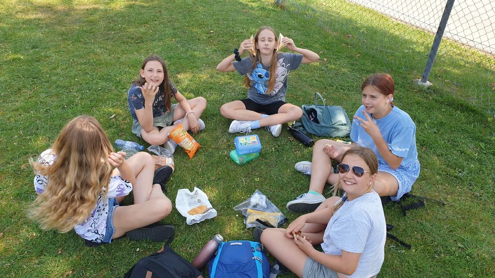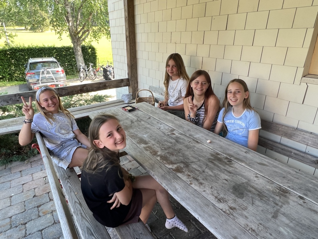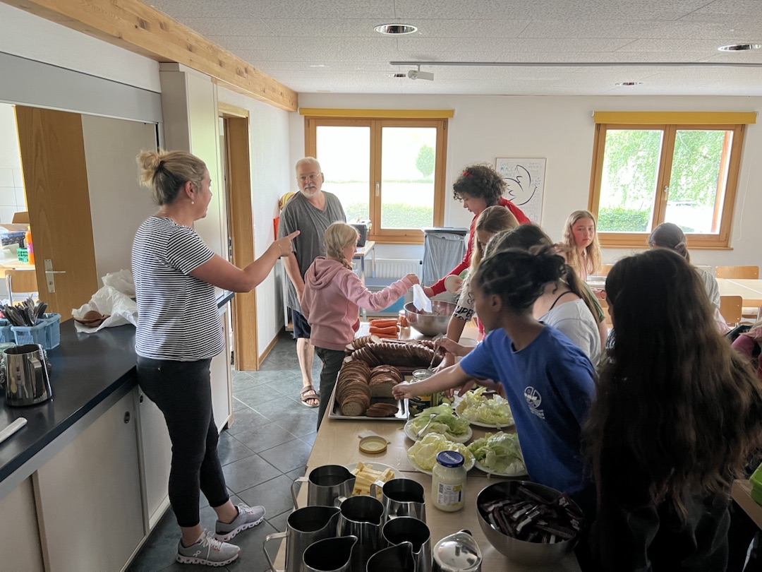 Die Jungs haben sehr lange geschlafen und die Mädchen, mhhh geht so. Am Morgen gab’s ein leckeres Frühstück. Nachher haben die Fünftklässler eine lange Velotour gemacht, die Sechstklässler am Nachmittag. Trotz so najaa Fahrrädern, sind alle super auf den Berg gekommen. Am Nachmittag waren wir in der Stadt, wir haben Lebensmittel eingekauft. Und jetzt gibt es gleich Lasagne juhu.