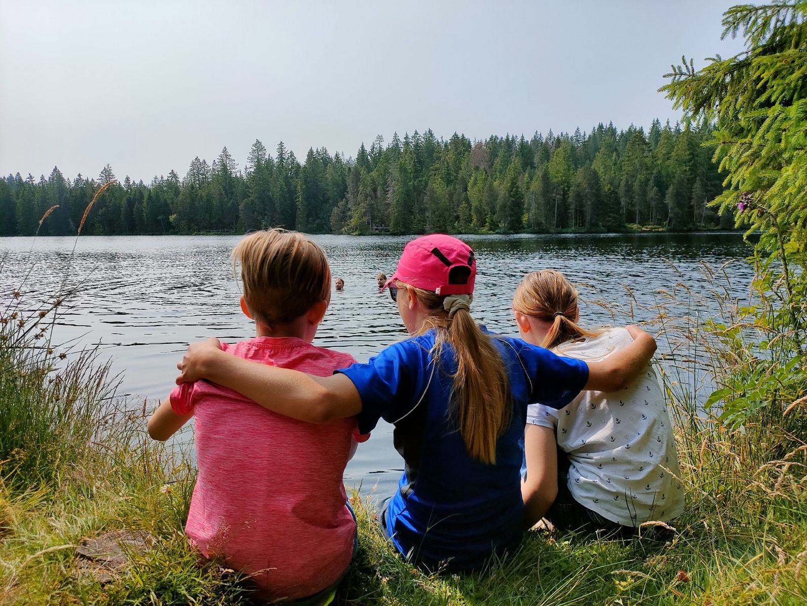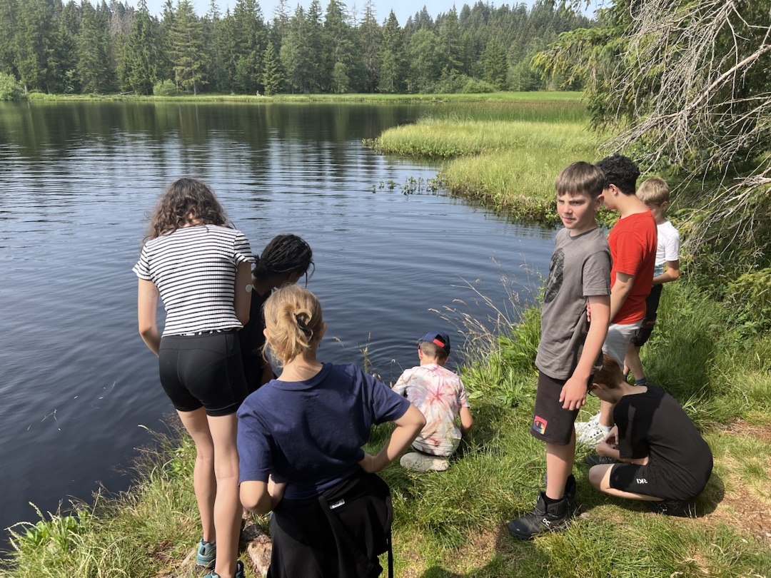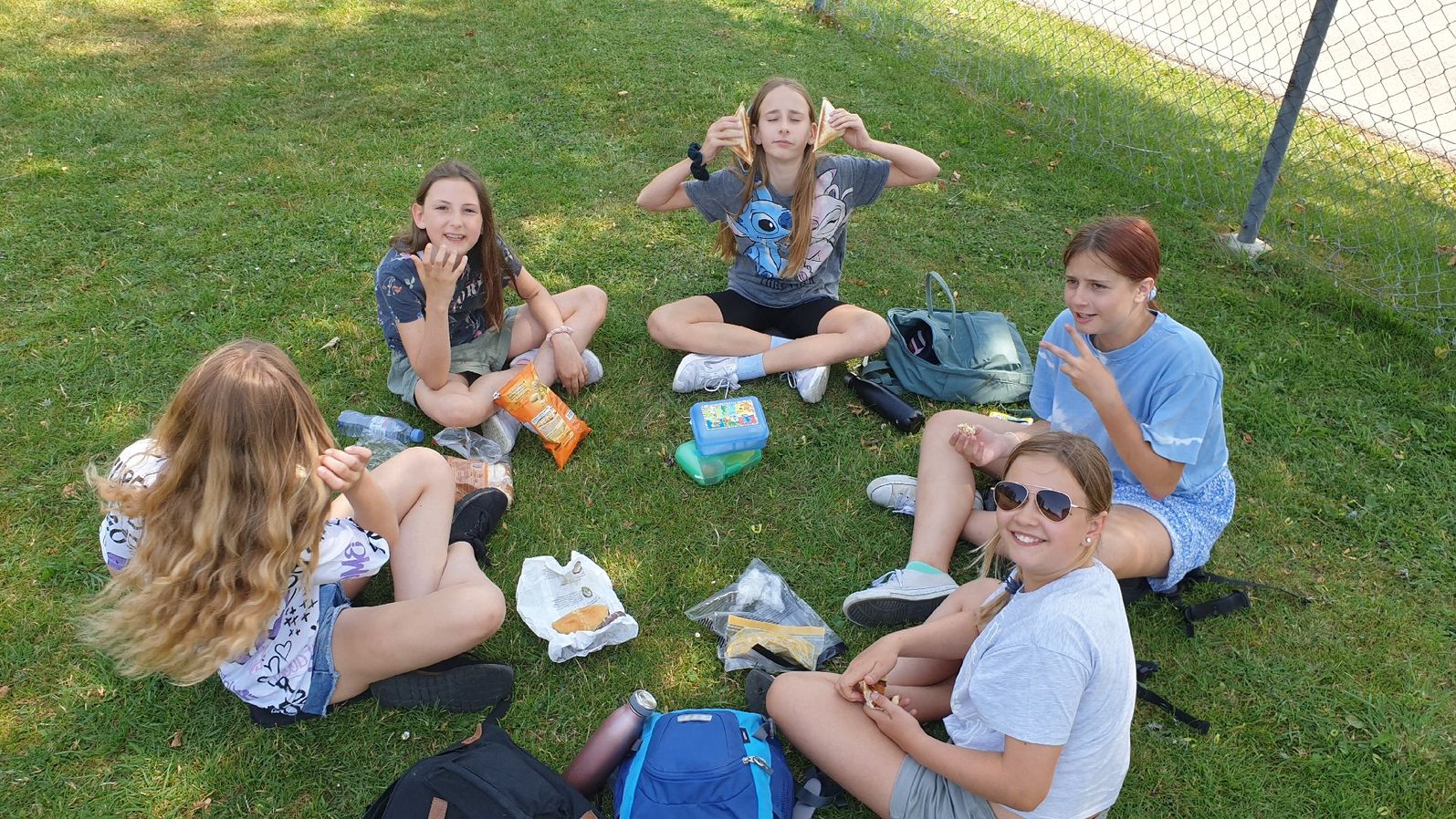 Heute haben wir gut geschlafen (alle). Wir sind heute wandern gegangen zum Moorsee (5.Klasse und 6.Klasse auf verschiedenen Wegen). Manche sind im See geschwommen, manche auch nicht. Nachher haben wir Eis gegessen. Jetzt gibt es gleich Crêpes zum Abendbrot und nachher eine Abschlussparty vom Lager.