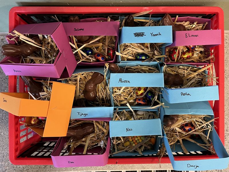 Die Kinder, die das Ressourcenzimmer besuchen, haben einen spannenden Osteranlass für die ganze Schule organisiert. Die Kinder vom Kindergarten bis zur 2. Klasse wurden auf die Suche nach ihren Osternäschtli rund ums Schulhaus geschickt. Auf die Schülerinnen und Schüler der 3.-6. Klasse wartete eine Schnitzeljagd. Die Rätsel führte sie quer durchs Dorf. Als Belohnung erhielt jedes Kind ein liebevoll gebasteltes Osternäschtli.