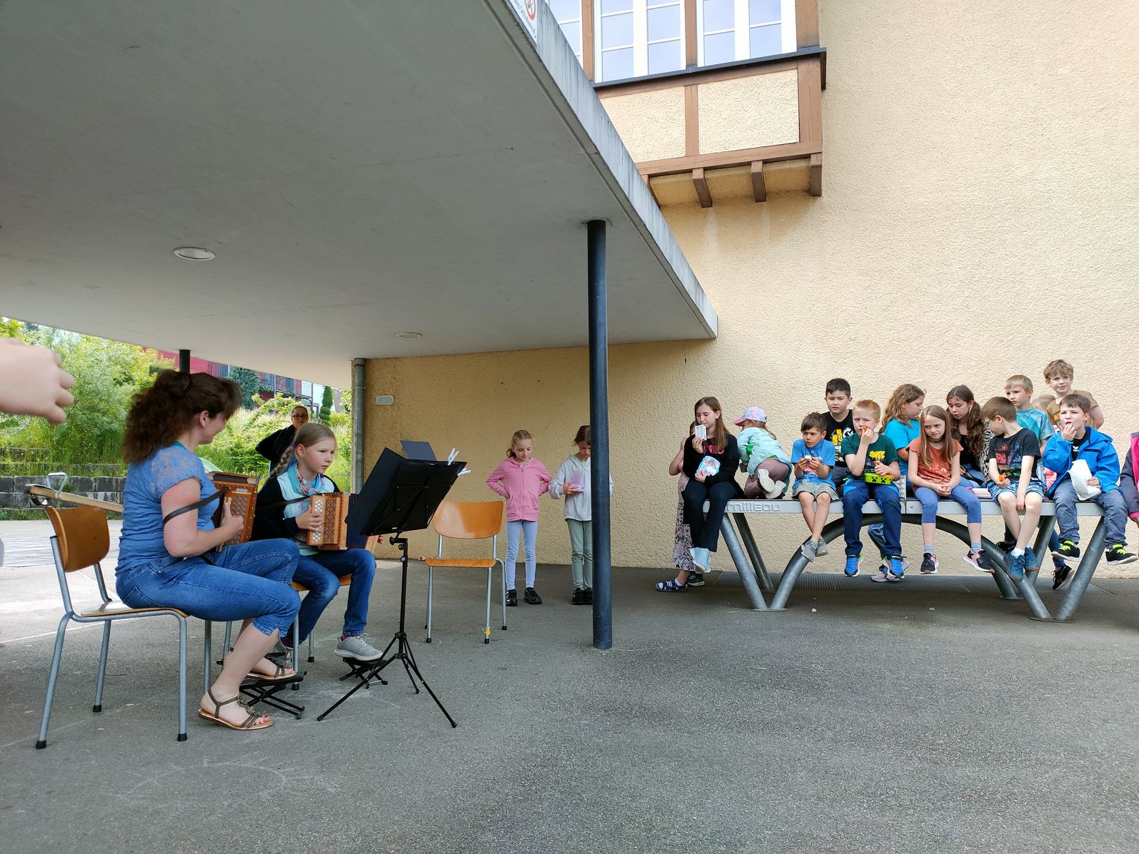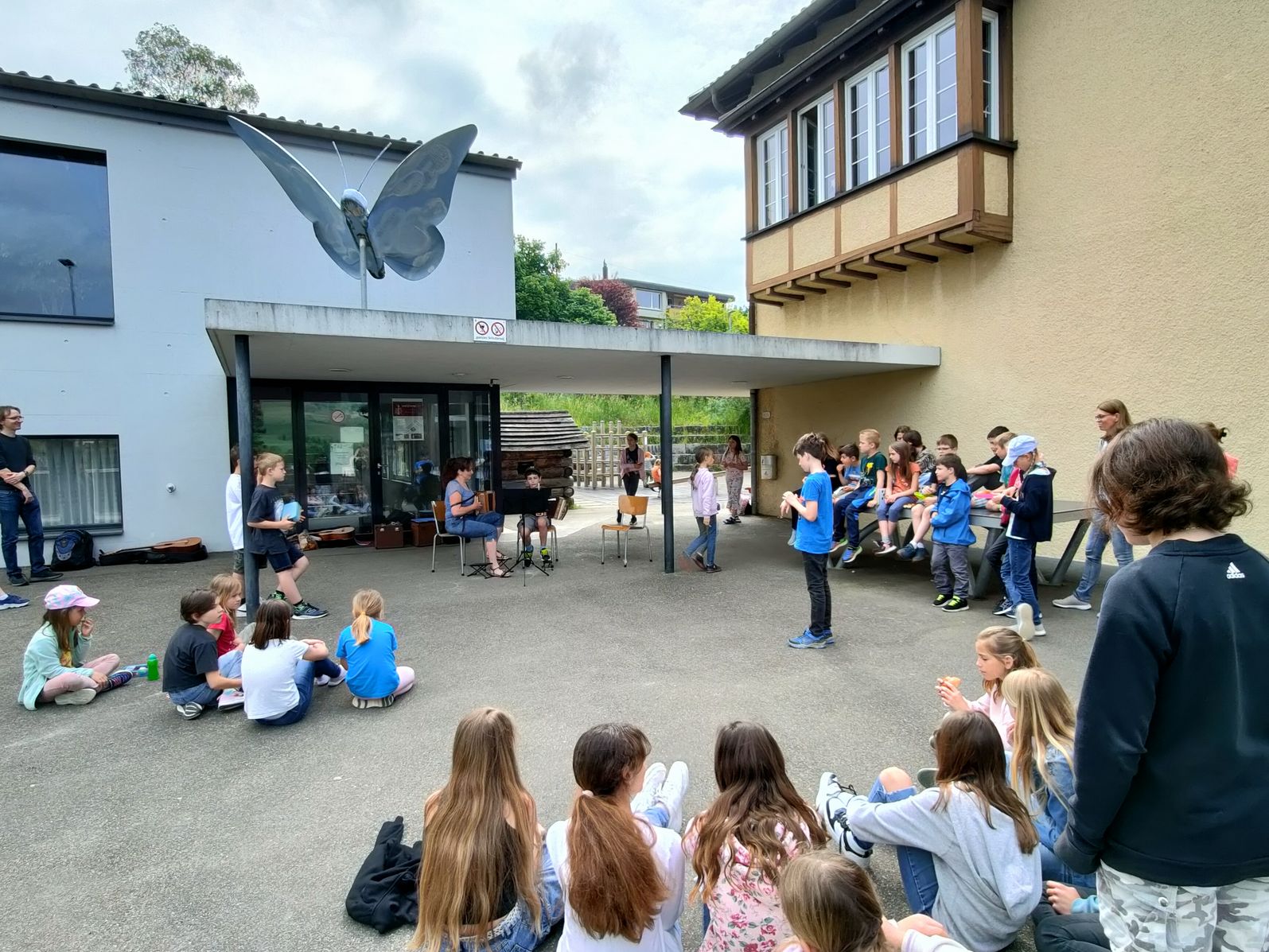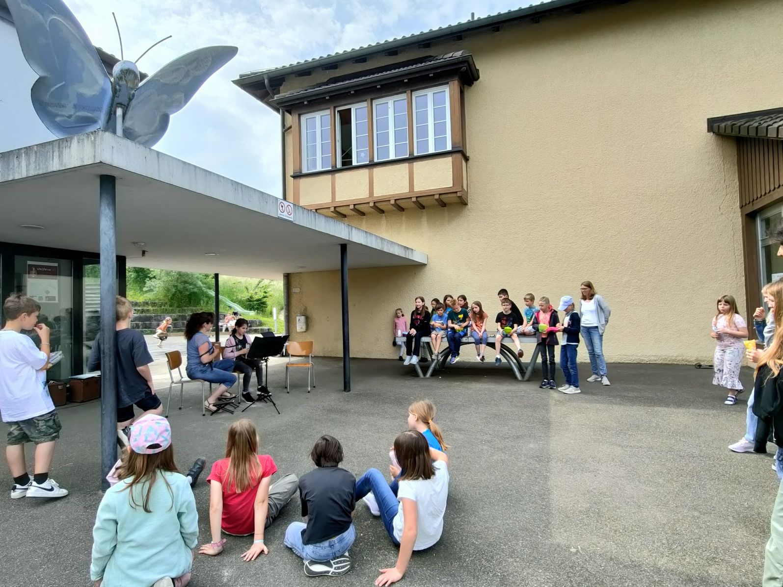 Am 23. Mai 2023 haben Manuel Meinen und Doris Erdin von der MSRL gemeinsam mit Ihren Musikschüler/innen Aileen, Ella, Jessie, Kilian und Nina in der grossen Pause für musikalische Unterhaltung gesorgt. Herzlichen Dank an die motivierten Kinder und Musiklehrpersonen für die schönen Klänge.