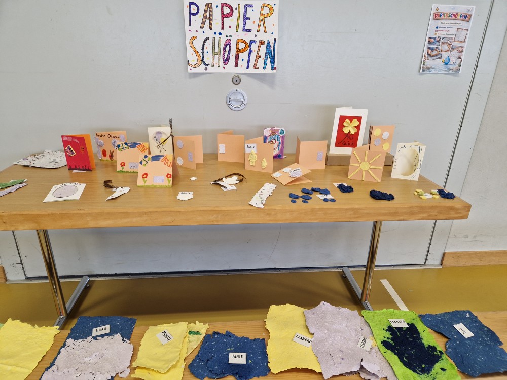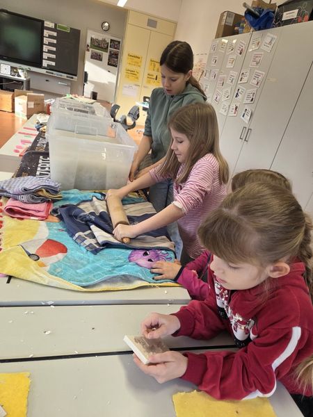 In der Woche vor den Frühlingsferien fand die Projektwoche an der Schule Mettauertal statt. Die Kinder konnten bei verschiedenen Projekt wie Textil Upcycling, Papierschöpfen, Genuss mit allen 5 Sinnen - Achtsam Essen, 1. Hilfe-Set für Körper, Seele und Freundschaft, ein Spiel erfinden, kreativ Entspannen, gib dir und der Natur Sorge, Mandala und Zen Tangle oder einer Mediengruppe mitmachen.