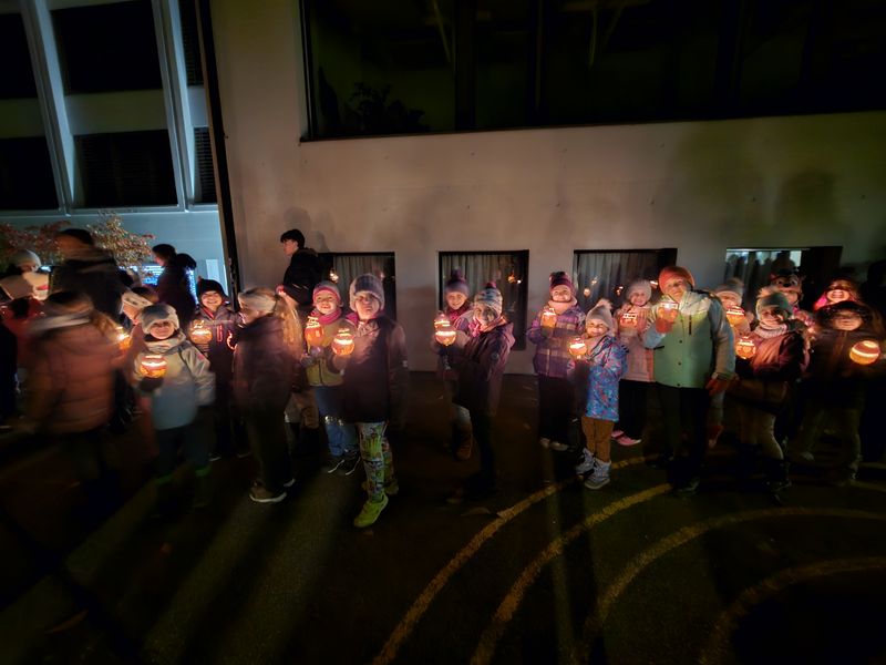 Die Kinder der Schule Gansingen haben sich grosse Mühe gegeben beim Schnitzen ihrer Räbeliechtli und den Kürbissen. Bei trockenem aber windigem Wetter durften sie dann am Dienstagabend durch die Strassen von Gansingen ziehen und mit ihren wunderschönen Lichtern das eine oder andere Herz erwärmen. Natürlich liessen sich es sich nicht nehmen, die eingeübten Lieder zu präsentieren. Zum Abschluss durften sich die Kinder mit einem Schoggiweggli und warmem Punsch aufwärmen und dann zufrieden nach Hause gehen.