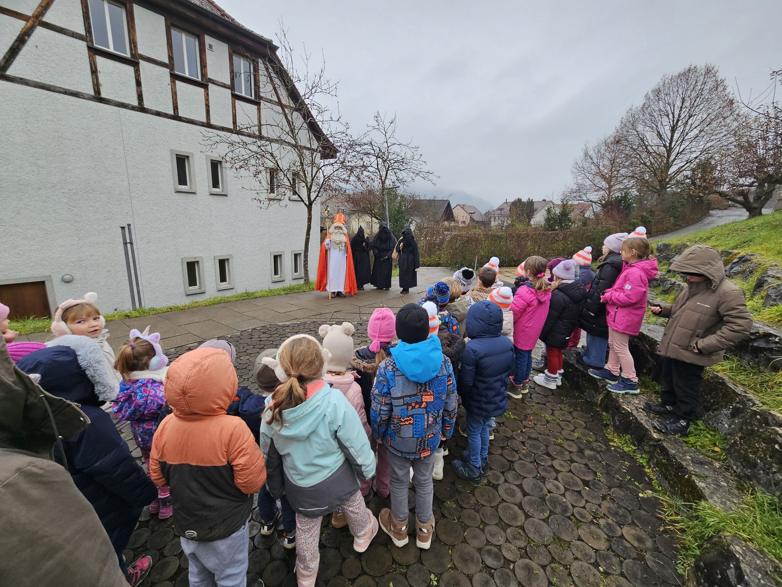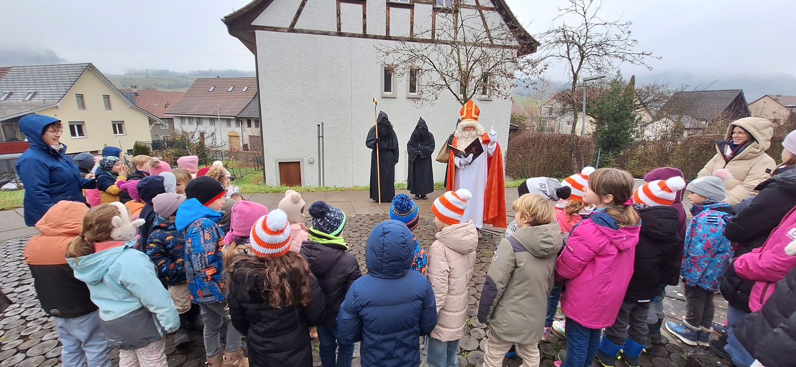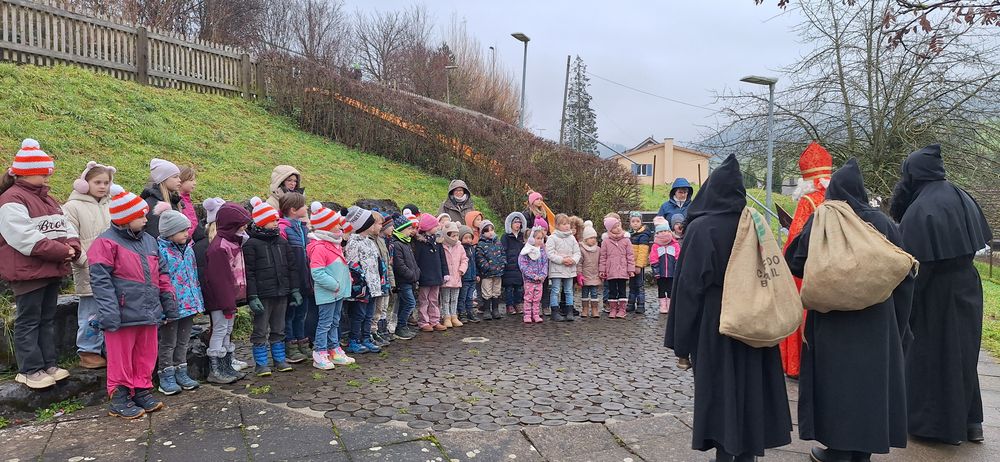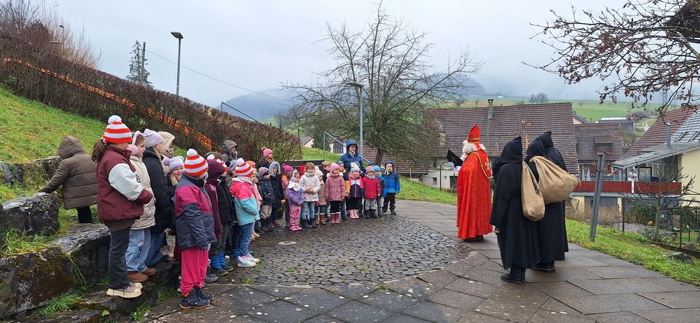 Am 5. Dezember besuchte der Samichlaus mit seinen drei Schmutzli die Kinder des Kindergartens und der 1. und 2. Klasse in Gansingen. Die Kinder haben ihre einstudierten Verse und Lieder präsentiert. Anschliessend lauschten sie gespannt, was der Samichlaus ihnen zu erzählen hat und freuten sich sehr über die Chlausüberraschung, die die Schmutzli in ihren grossen Juttessäcken mitgebracht haben.