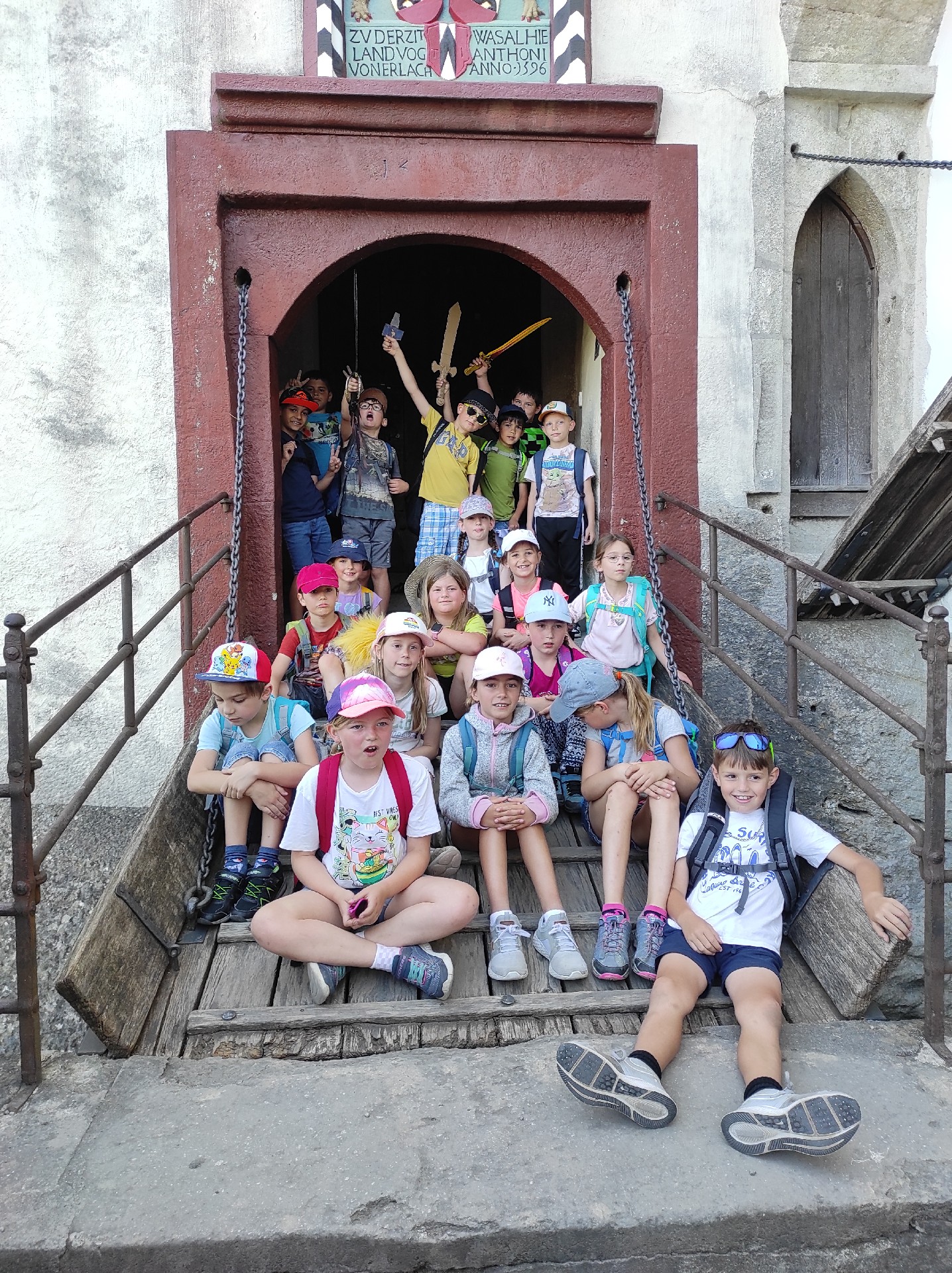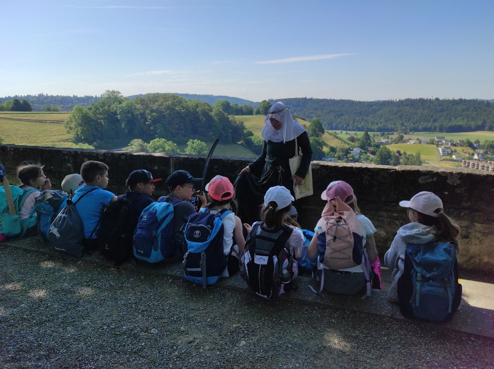 Unsere erlebnisreiche Schulreise führte uns über viele Stufen zum Schloss Lenzburg. Bei der spannenden Führung mit Gräfin Ida haben wir besonders viel über das Rittererleben erfahren. Das Verkleiden und Basteln im Kindermuseum hat alle begeistert. Die ausdauernden Kinder erklommen zuletzt noch die Himmelsleiter. Ein wunderschöner Blick auf die Burg war die Belohnung! Glücklich und zufrieden kamen alle wieder im Mettauertal an.