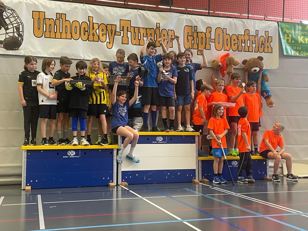 Beim Unihockeyturnier in Gipf-Oberfrick vom 8. und 9. März zeigten die Spielerinnen und Spieler vollen Einsatz. Die Mannschaft der 6. Klasse erreichte in ihrer Kategorie den starken 3. Platz. Besonders erfolgreich war die Gruppe mit Kindern aus der 4. und 5. Klasse, die sich den 1. Platz sicherte.