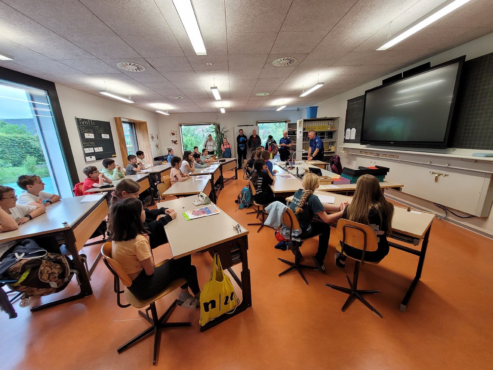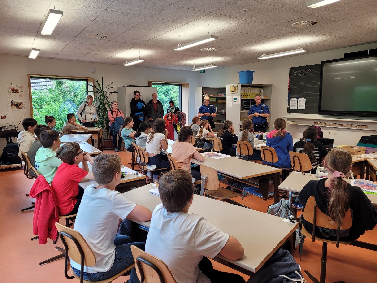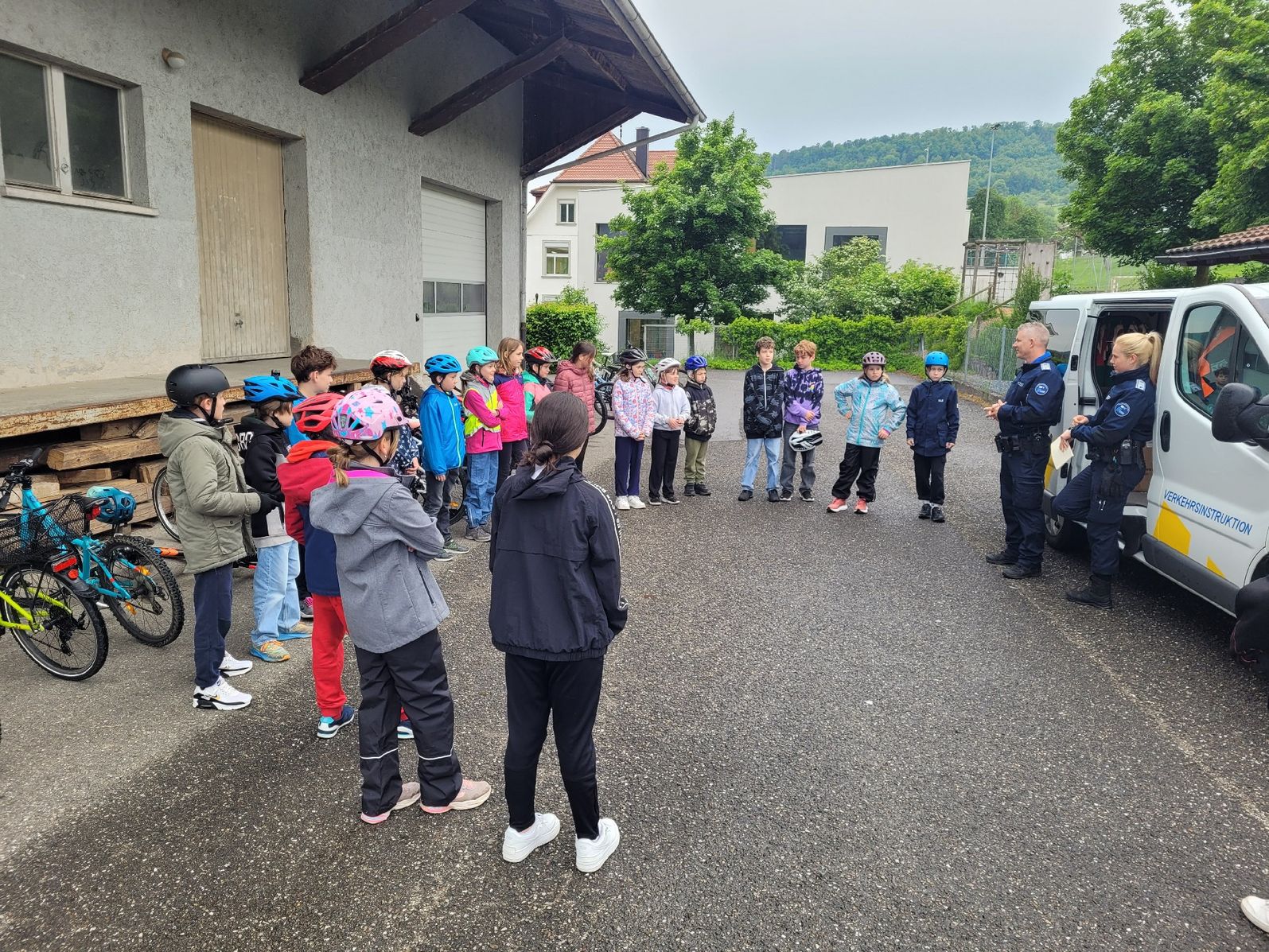 Am 23. Mai 2024 fand an der Schule Mettauertal die Veloprüfung für die 4. und 5. Klasse statt, bei der rund 40 Kinder teilnahmen. Trotz des schlechten Wetters mit Regen und nassen Straßen konnten vier Schülerinnen und Schüler die Prüfung fehlerfrei absolvieren. Die Prüfung, die sowohl theoretische als auch praktische Elemente beinhaltete, wurde von den Kindern mit großem Engagement und Geschicklichkeit gemeistert. Die erfolgreiche Teilnahme von vier Kindern ohne Fehler zeigt, dass die Schülerinnen und Schüler gut auf die Prüfung vorbereitet waren und auch unter schwierigen Bedingungen ihr Bestes geben konnten. Die Schule Mettauertal gratuliert allen Teilnehmern zu ihren Leistungen und freut sich über einen gelungenen Morgen trotz des unbeständigen Wetters.