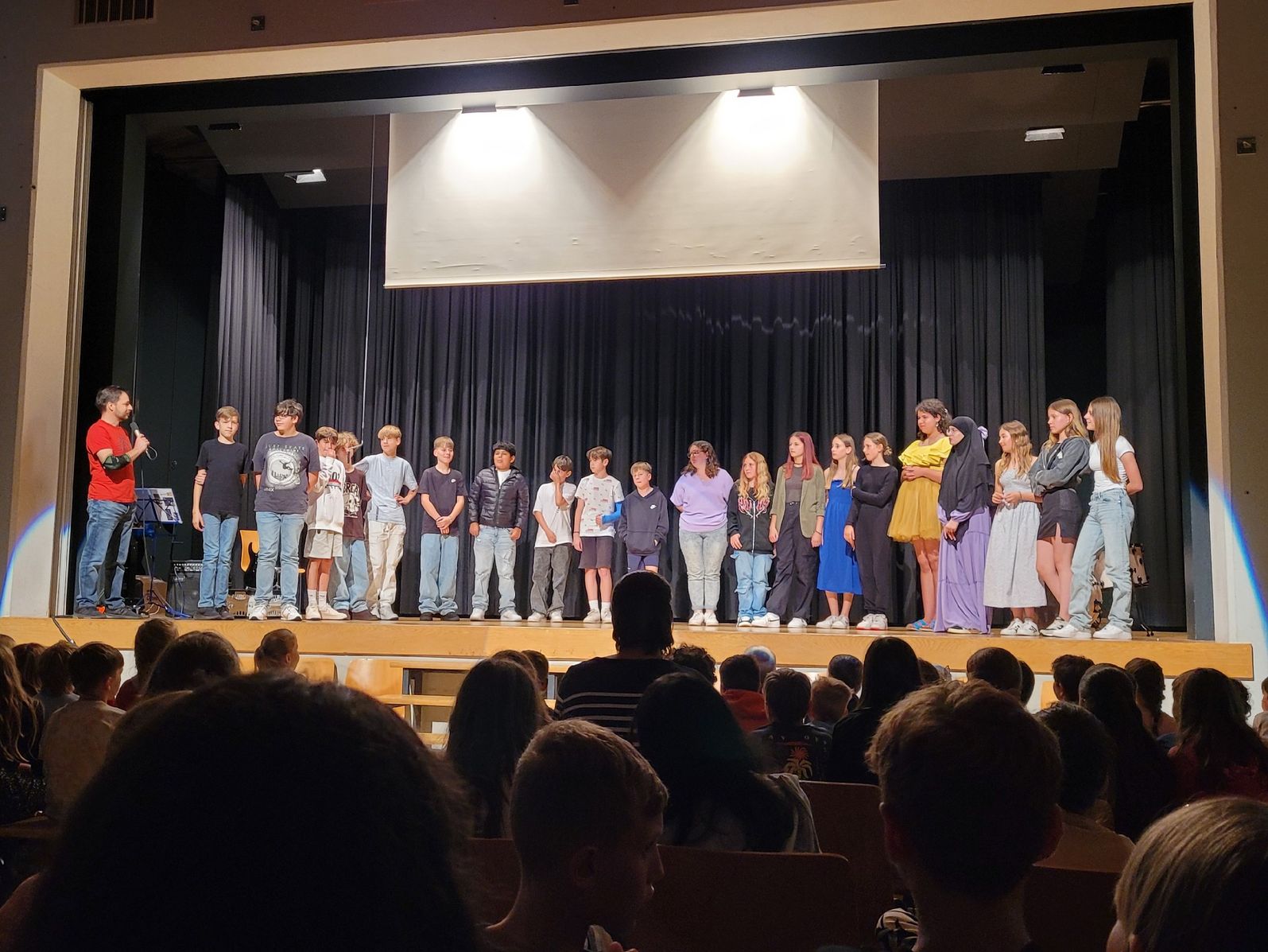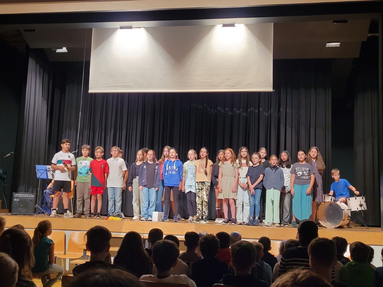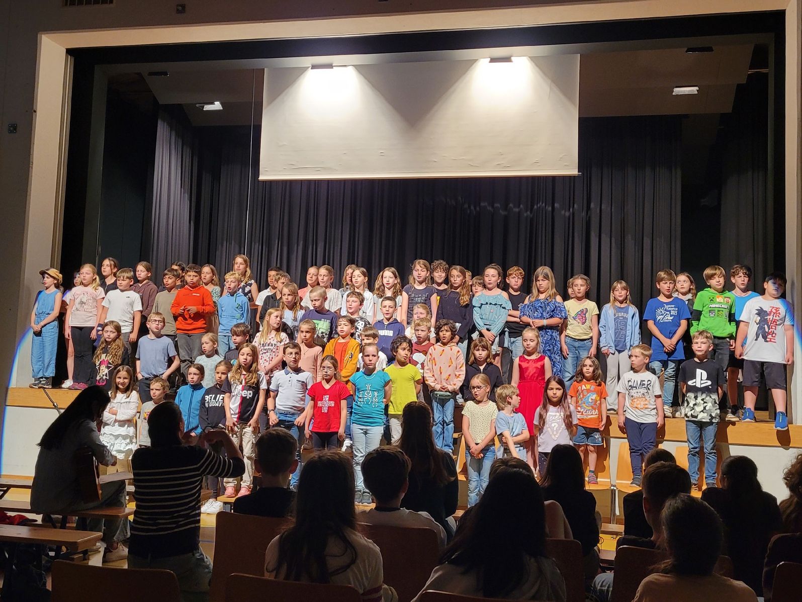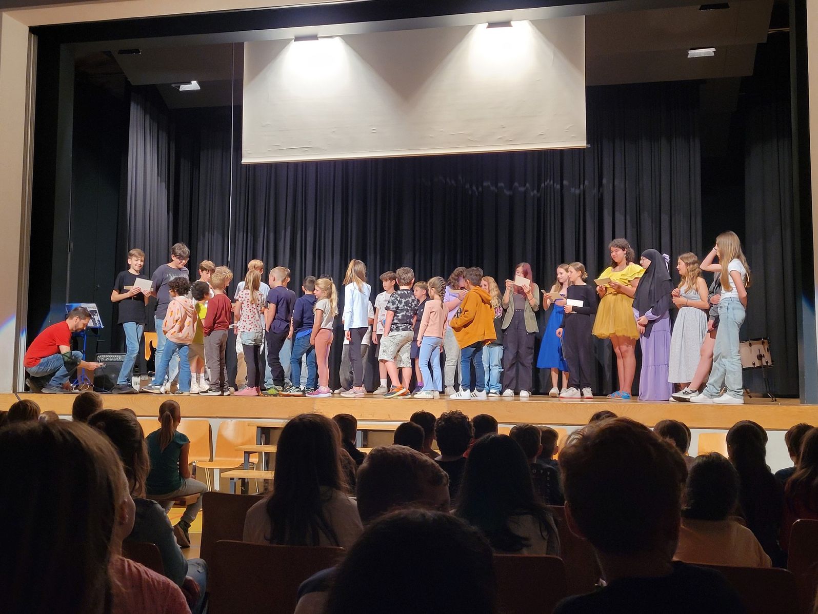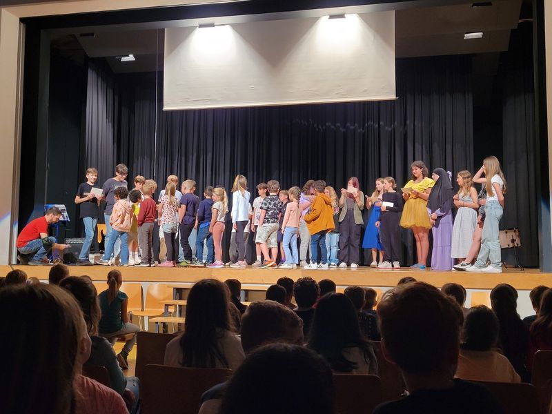 Die Abschlussfeier endete mit einem Film, welcher die sechste Klasse mit viel Engagement gedreht hatte. Diese sehr gelungene Arbeit wurde mit grossem Applaus gewürdigt. Die Abschlussfeier war ein gelungenes Fest, das den Übergang von der Primarschule zur Oberstufe würdigte und sowohl den Schülerinnen und Schülern als auch den Lehrpersonen in guter Erinnerung bleiben wird.