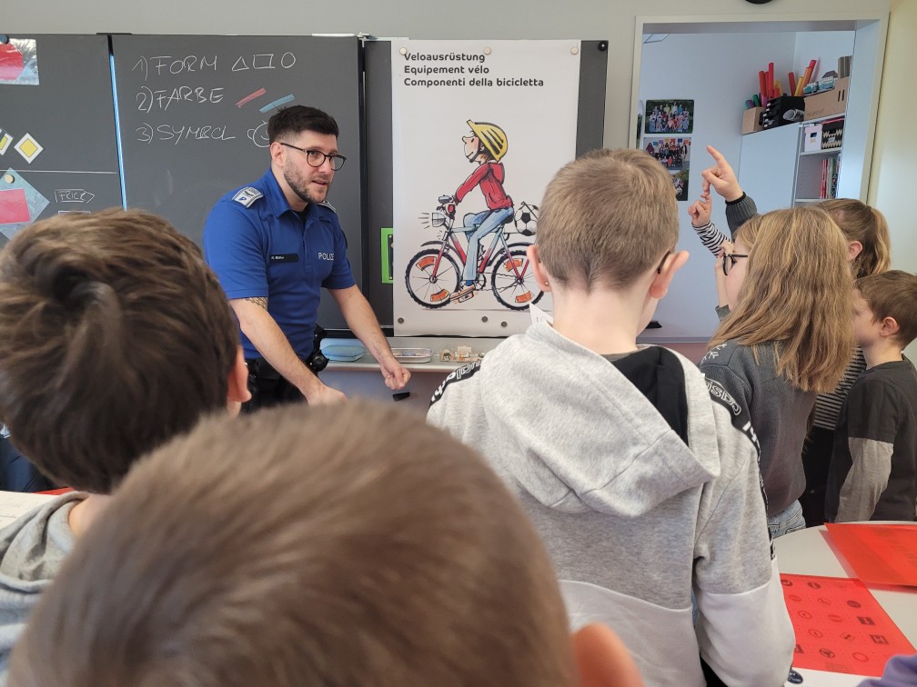 Die Regionalpolizei oberes Fricktal schulte die Drittklässler der Schule Mettauertal im Klassenzimmer. In zwei Lektionen lernten die Kinder die wichtigsten Verkehrsschilder und die richtige Veloausrüstung kennen – als Vorbereitung auf die Veloprüfung im nächsten Jahr. Besonders das Thema Sicherheit stand im Fokus: Von Vortrittsregeln bis zu funktionierenden Bremsen und Helmen wurde alles erklärt. Spielerische Übungen halfen, das Gelernte zu festigen.